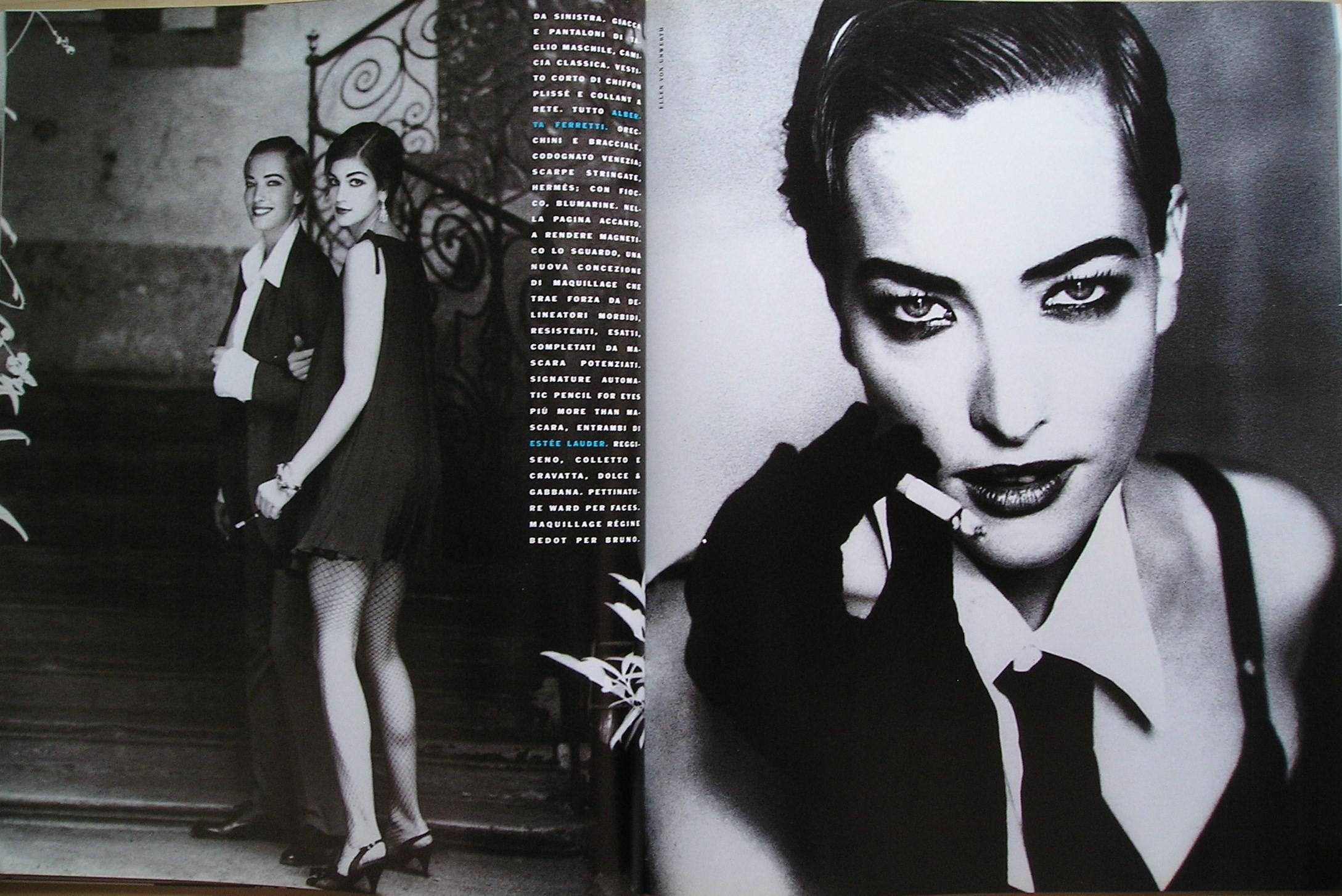 "ritrovate eleganza" - VOGUE Italy January 1991 #485 by Ellen Von Unwerth - also showing Cindy Crawford