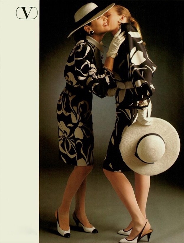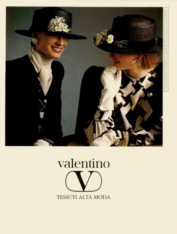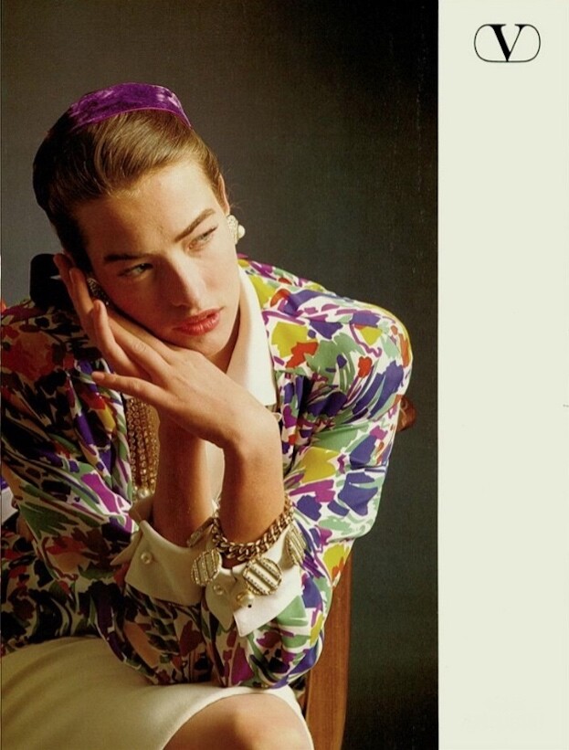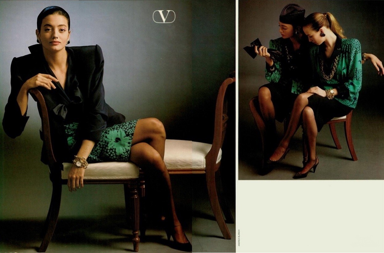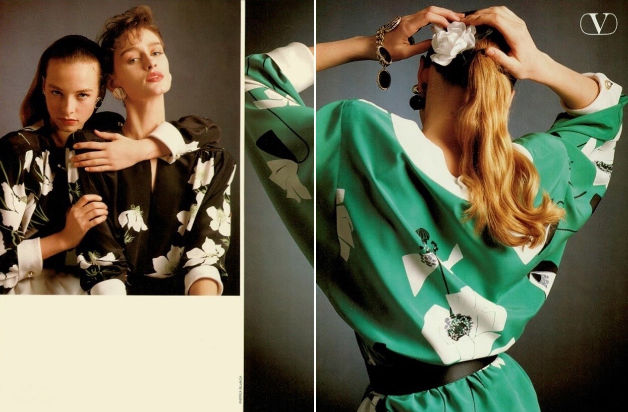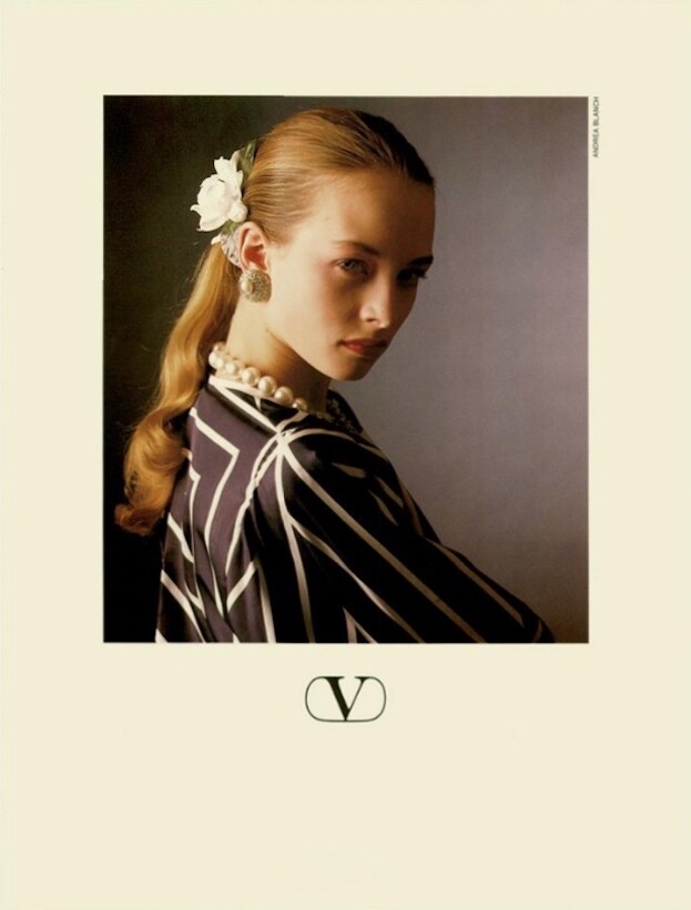 1986 ad for Valentino. Also showing Aly Dunne, Christy Turlington, Charlotte Morgan and unknown