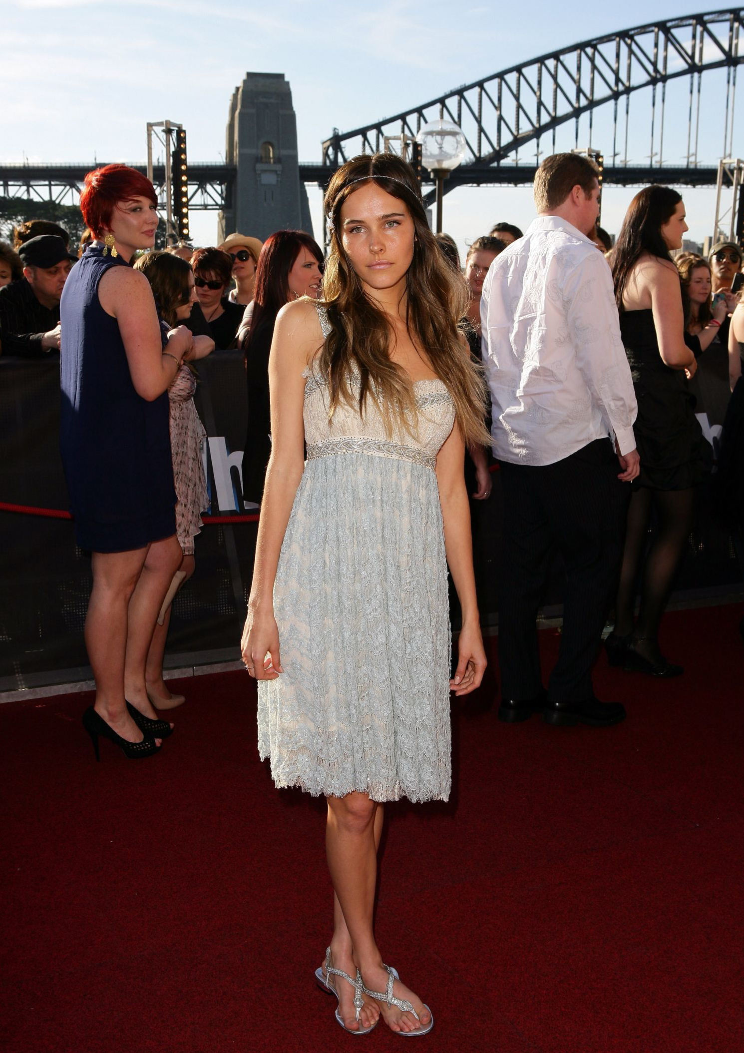 Isabel Lucas - wearing a white dress out with friends in L.A. - August 30, 2010