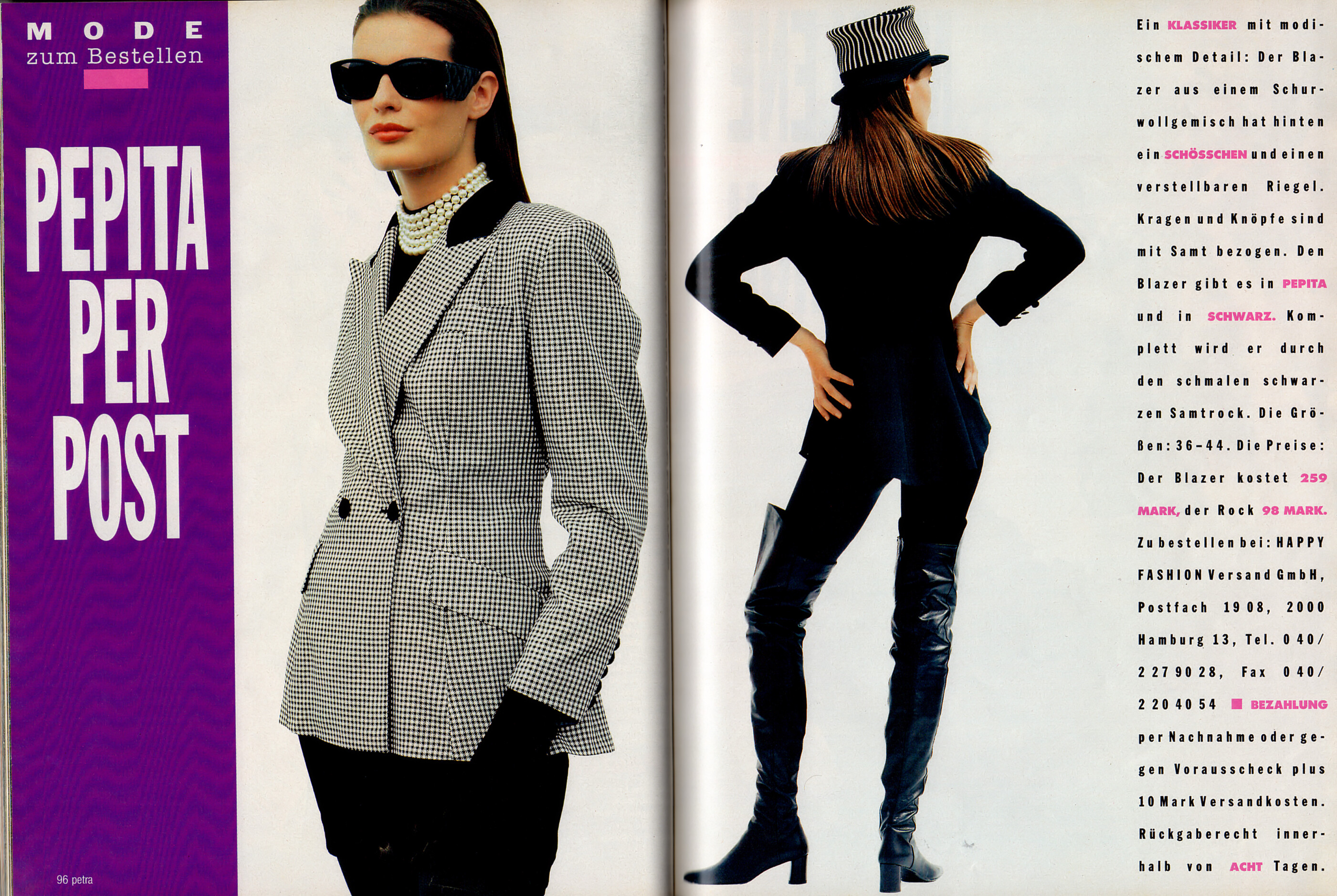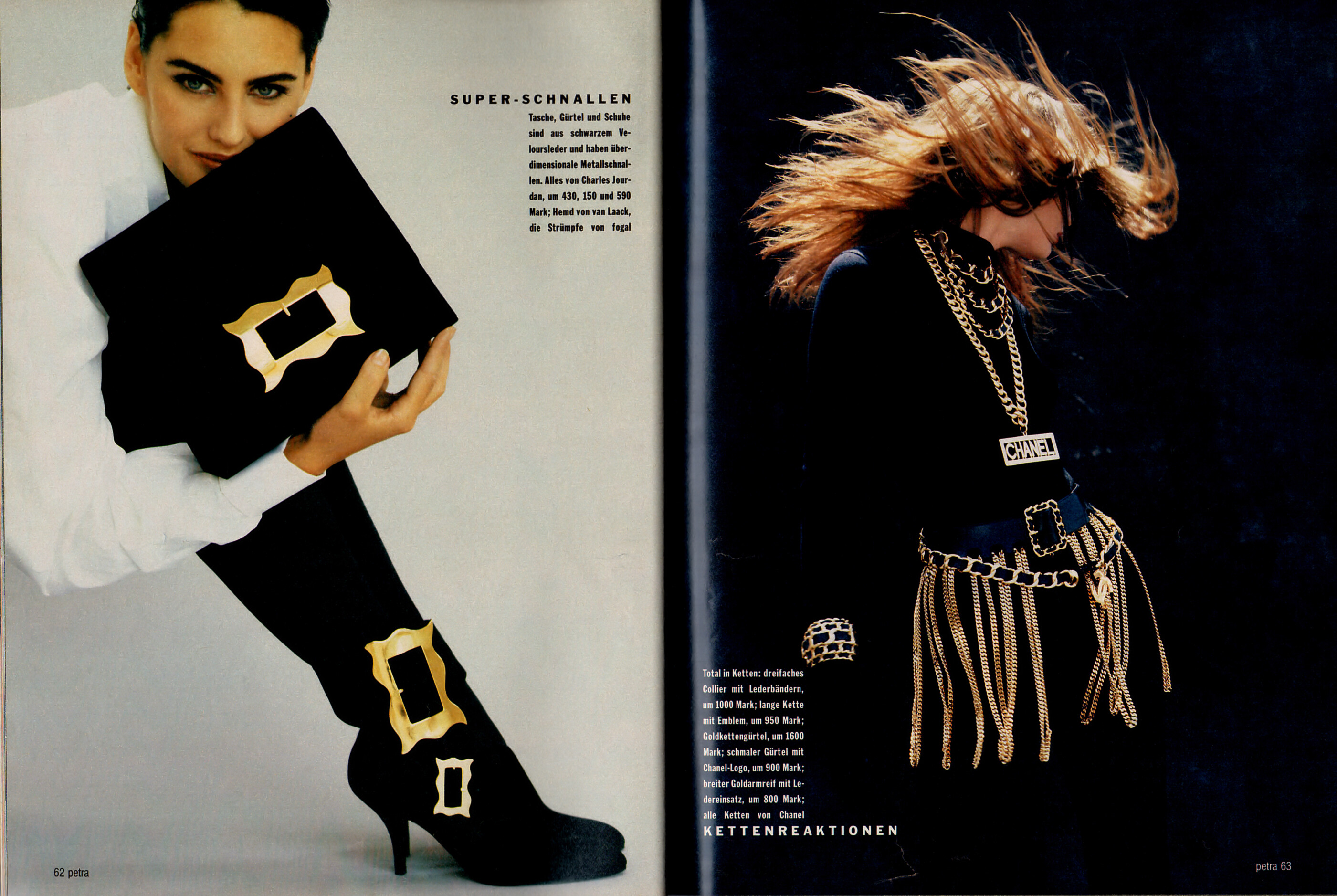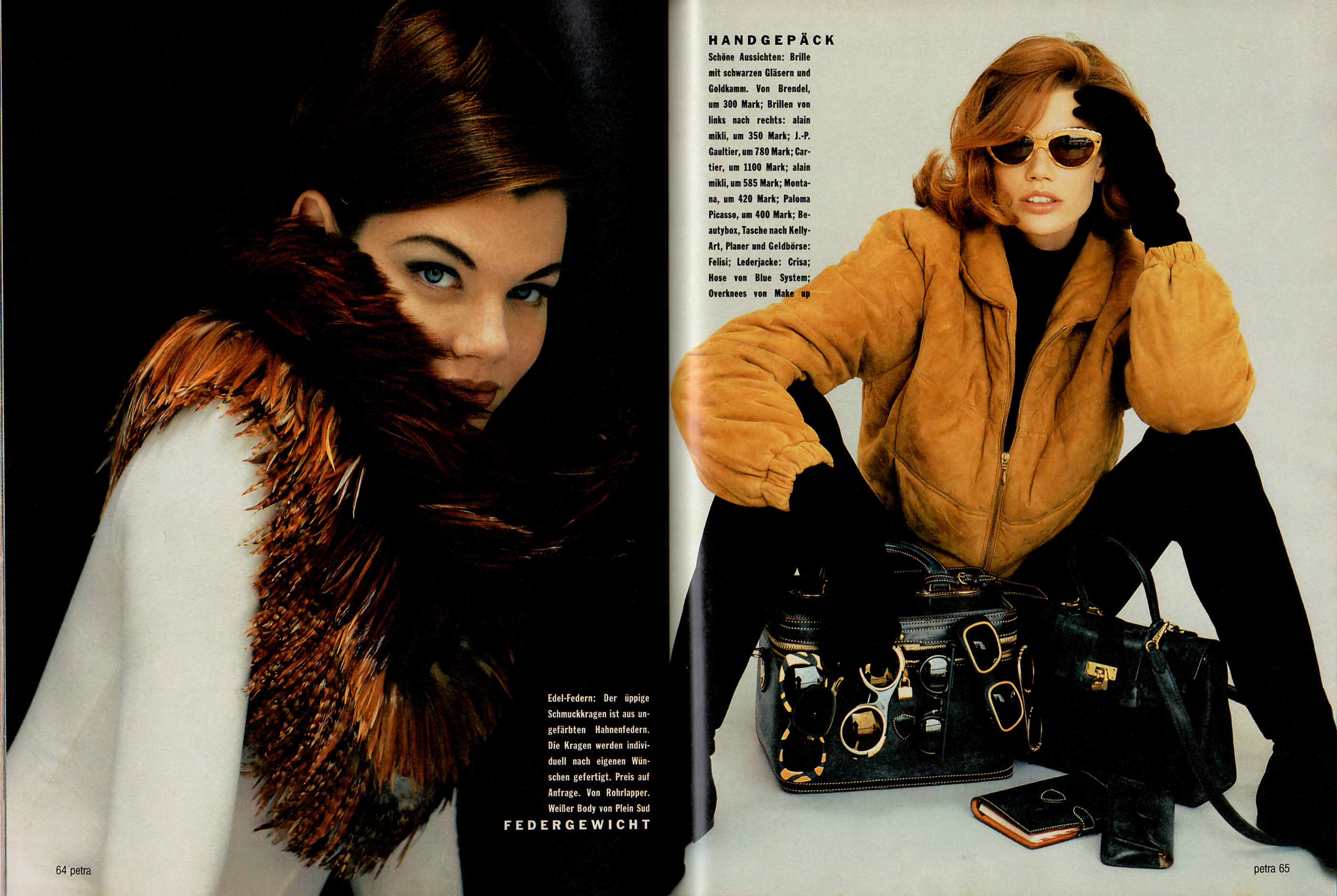 "Accessoires" - petra Germany October 1991 (30. September 1991) by Dimitri Mavrikis - also showing Karin Kelts