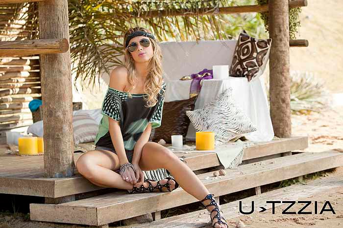 Cecilia Bonelli (Argentinian model) showing a big cleavage & wearing a white spandex and shorts for a photo session: