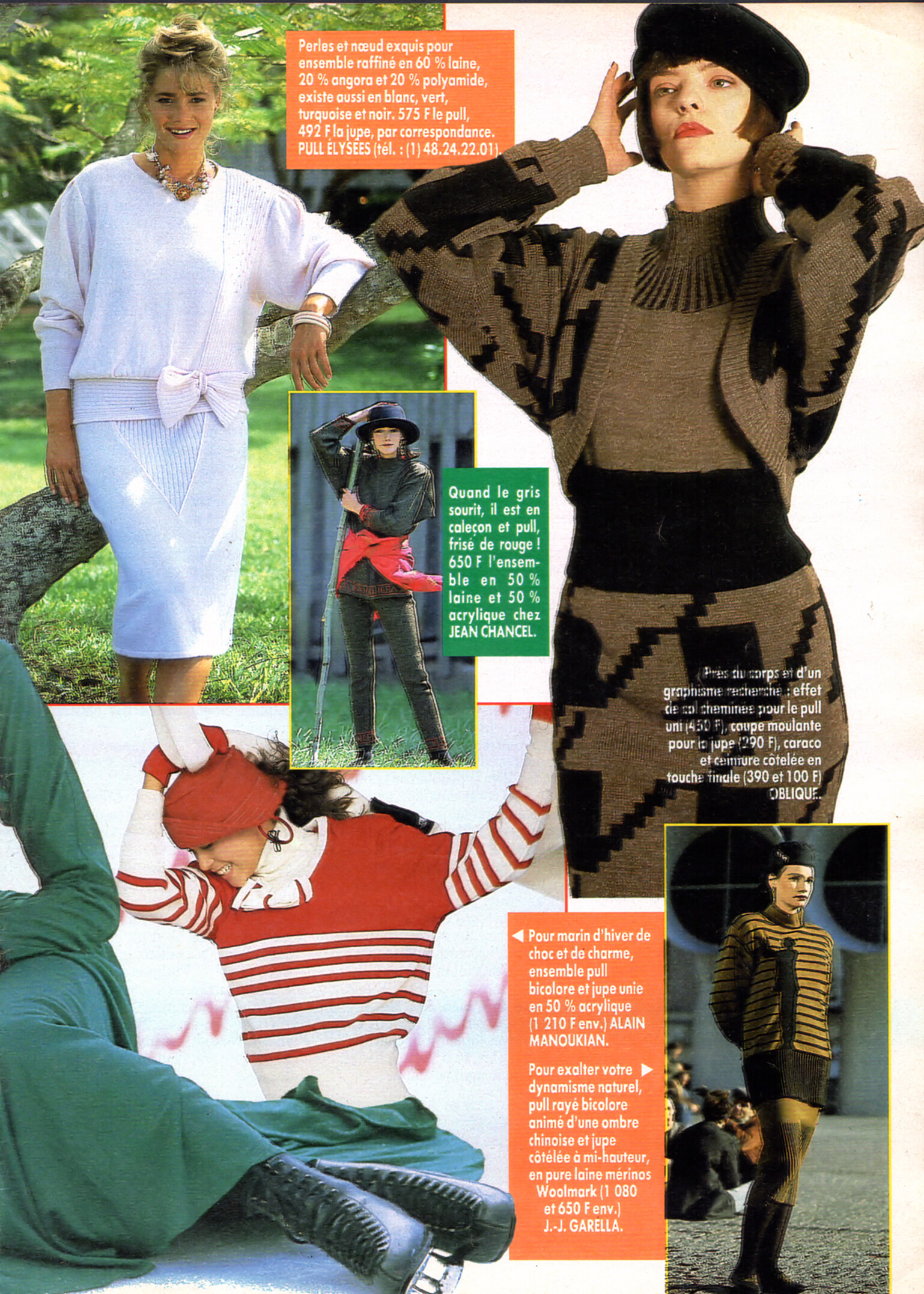 "FEMININ MASCULIN" - Nous Deux France 25. November - 1. December 1987 #2108 - also showing Heather Stewart-Whyte, Sophia Cohn, Amie Morgan, unknown
