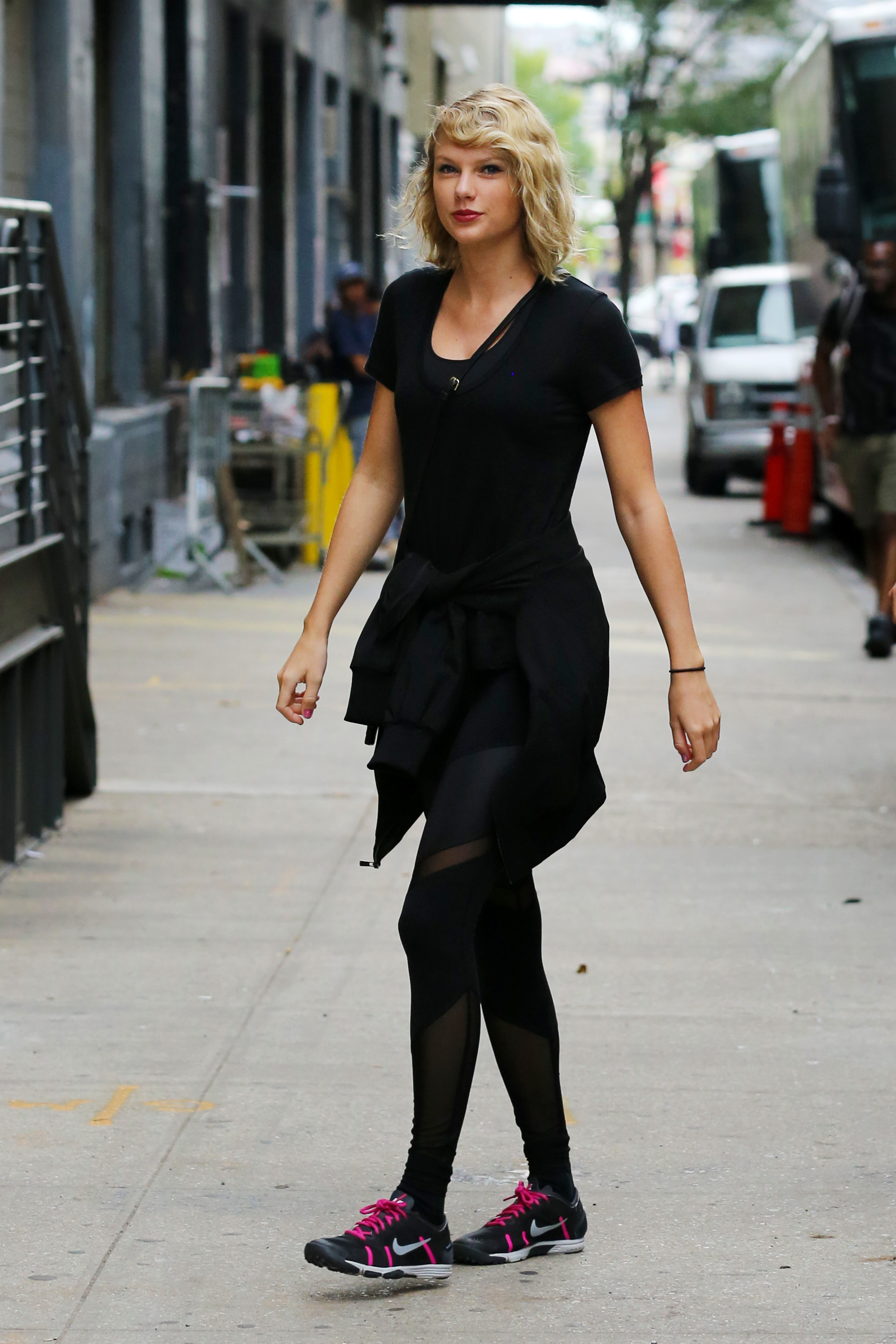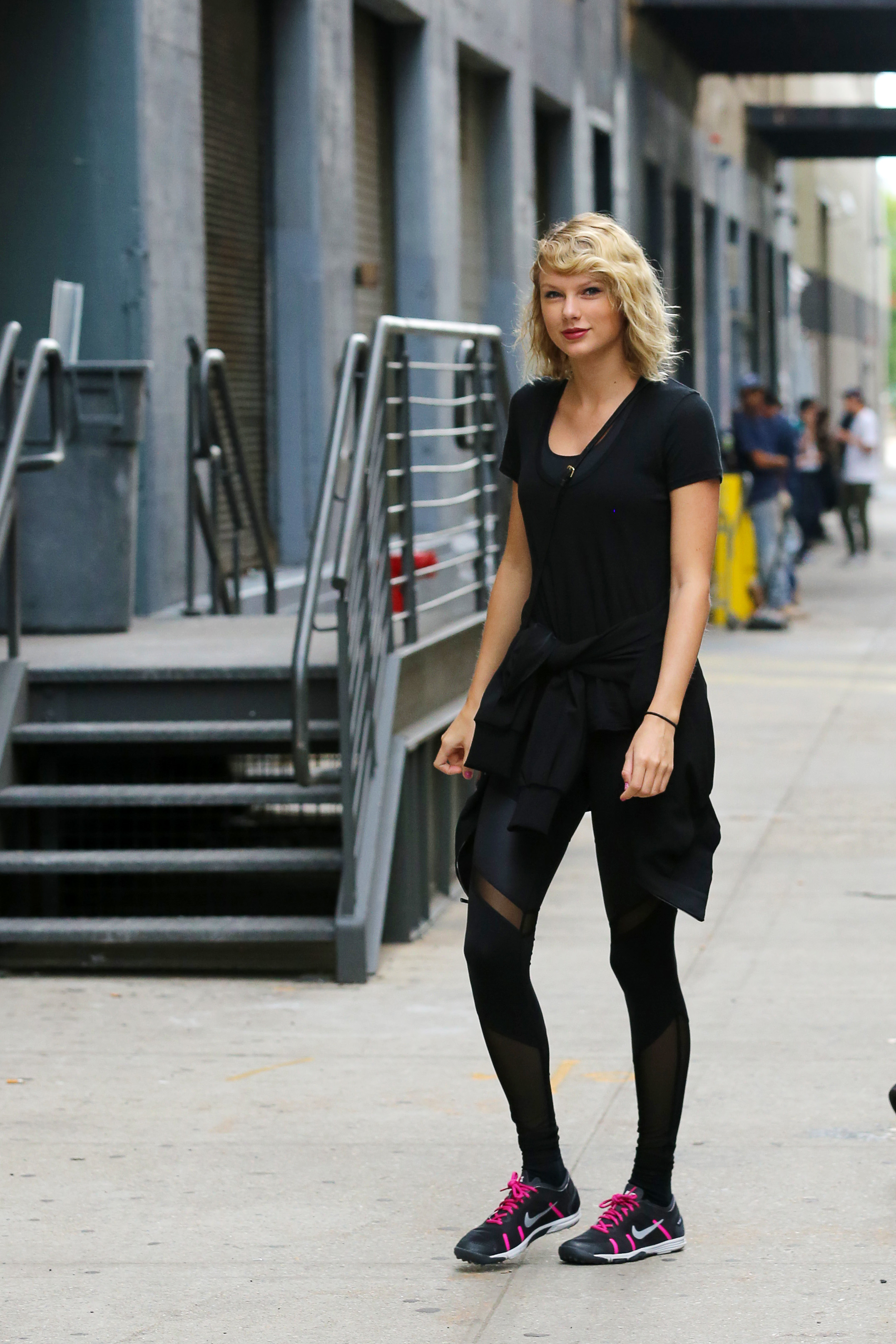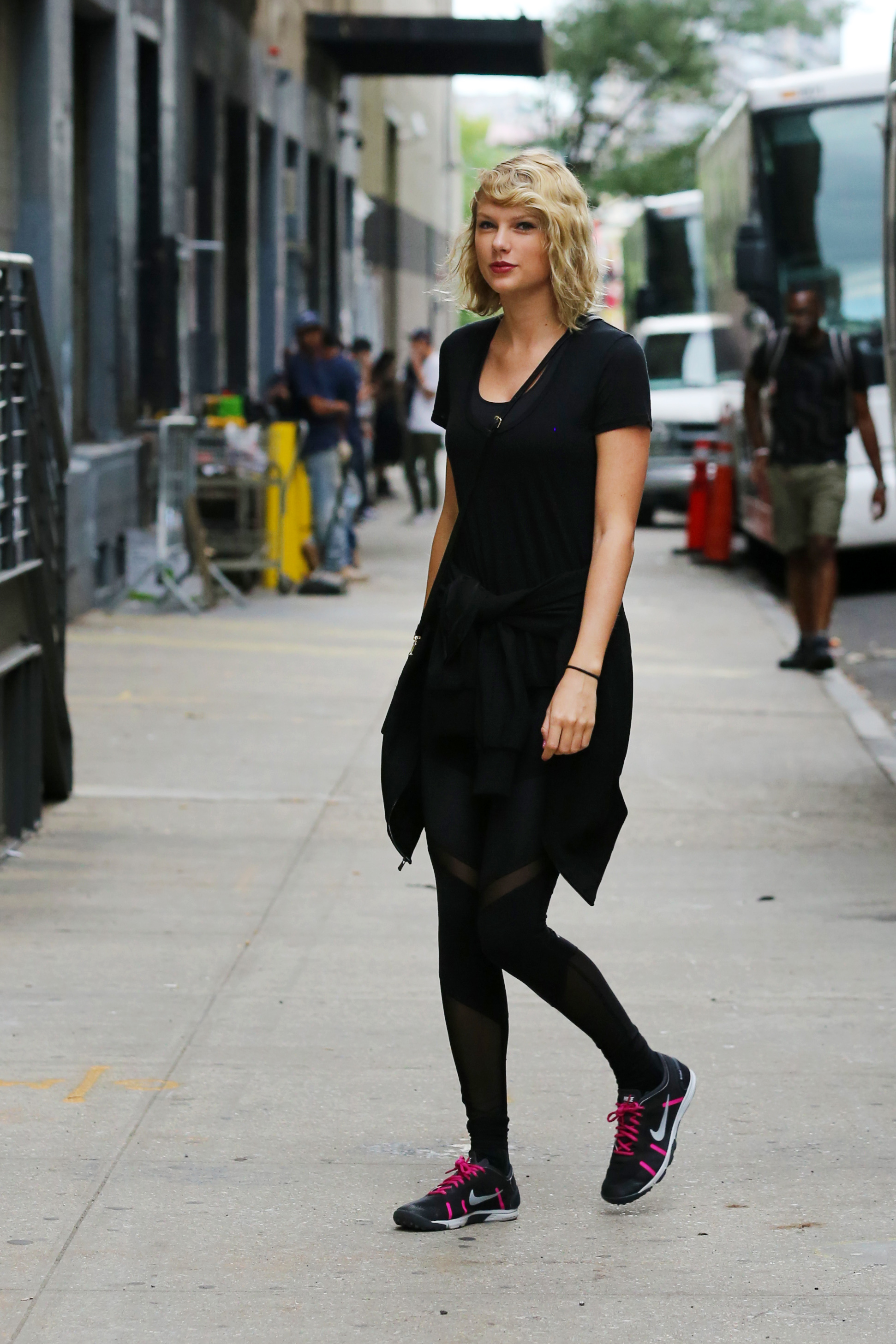 love her hair latetly, and im happy to see she looks more relaxed. I'm not sure about why she's wearing so much black lately.