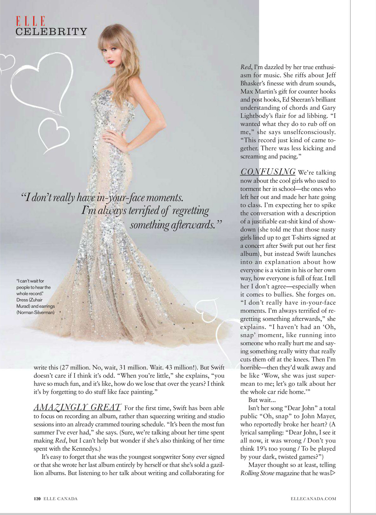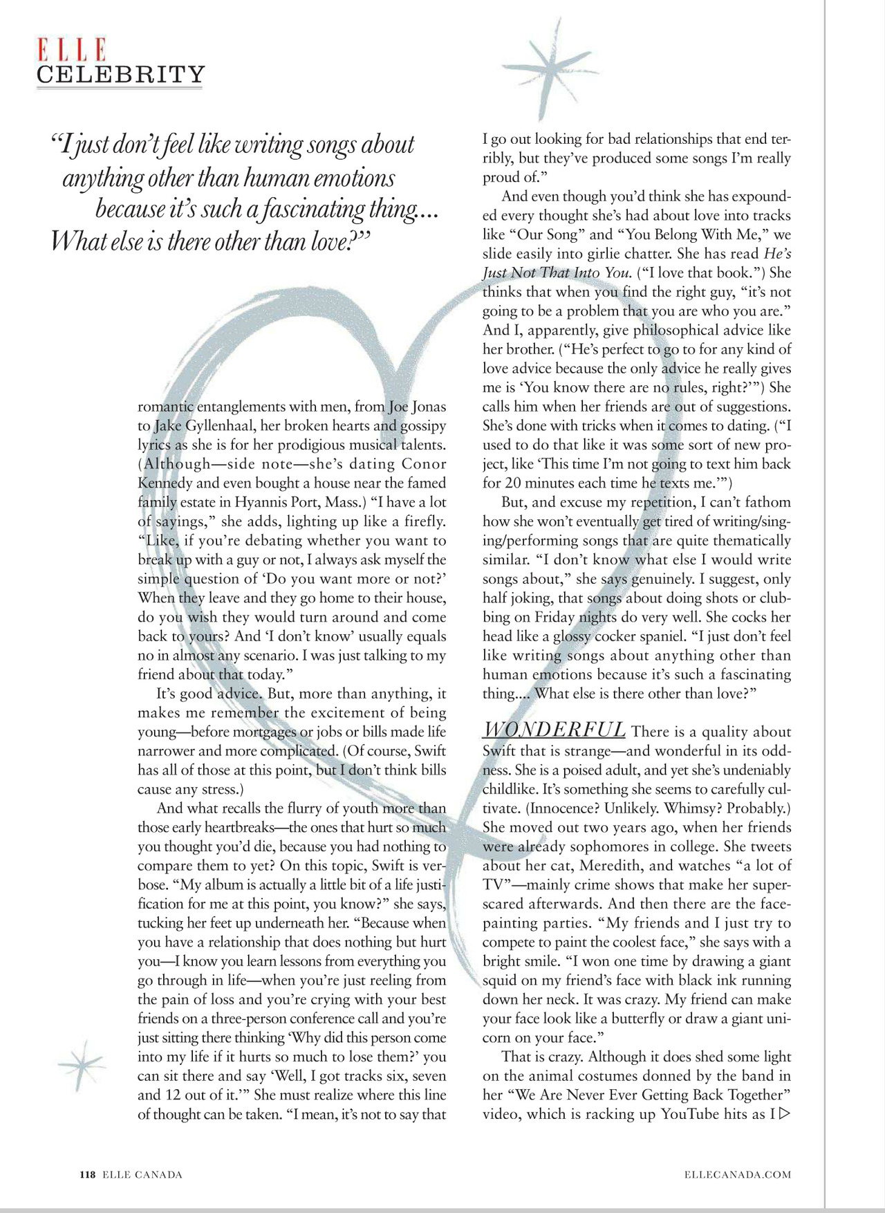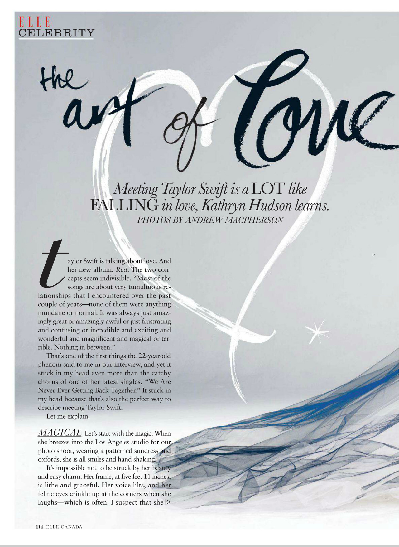 Two covers and cover story "The Art of Love" for Elle Canada December 2012