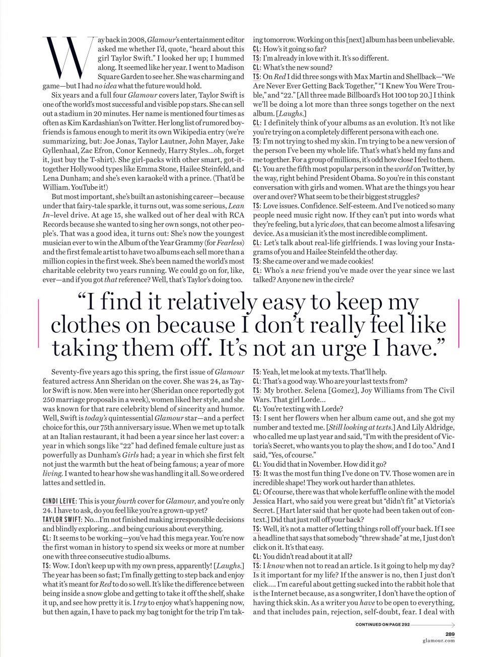 Cover + cover story for Glamour US March 2014