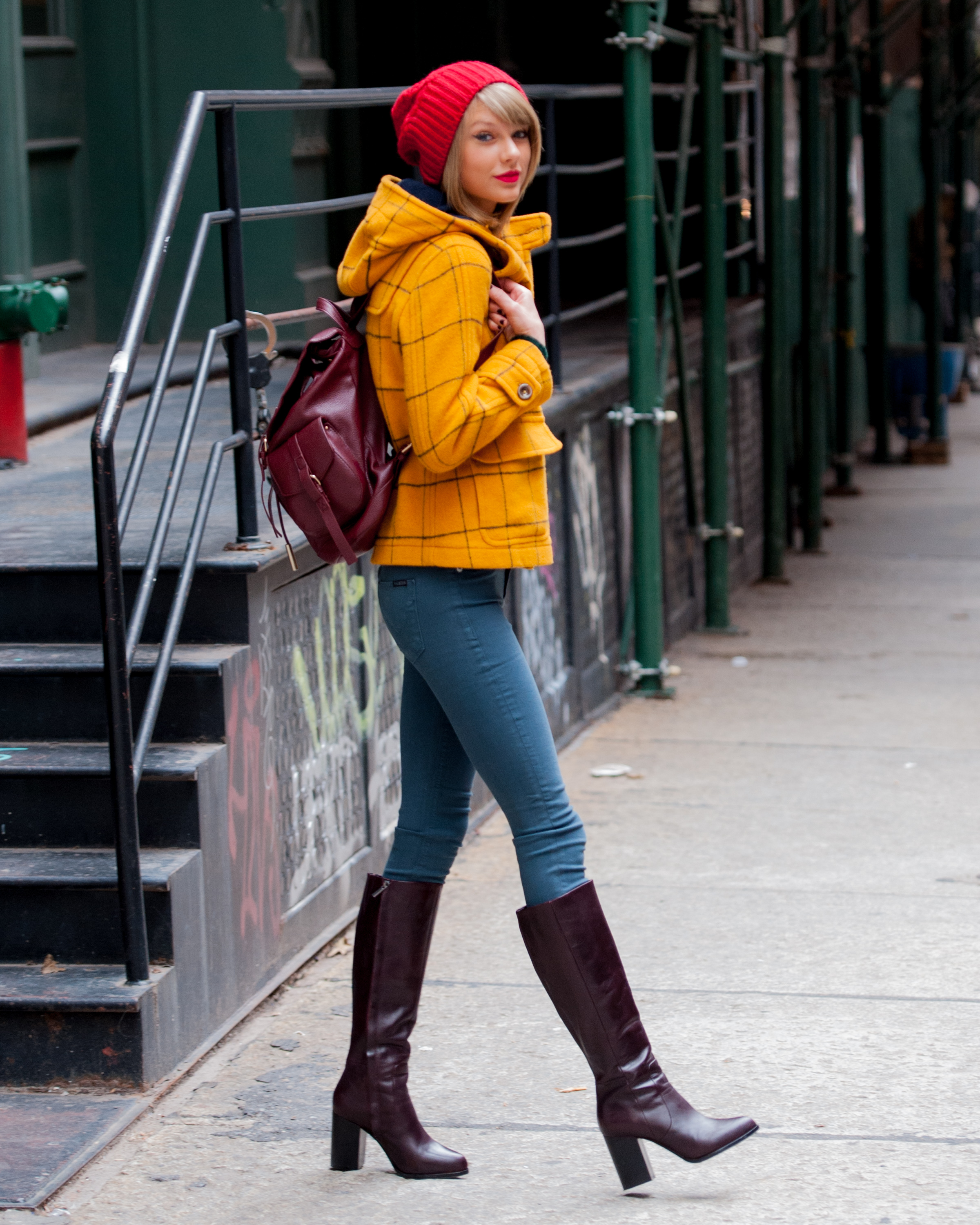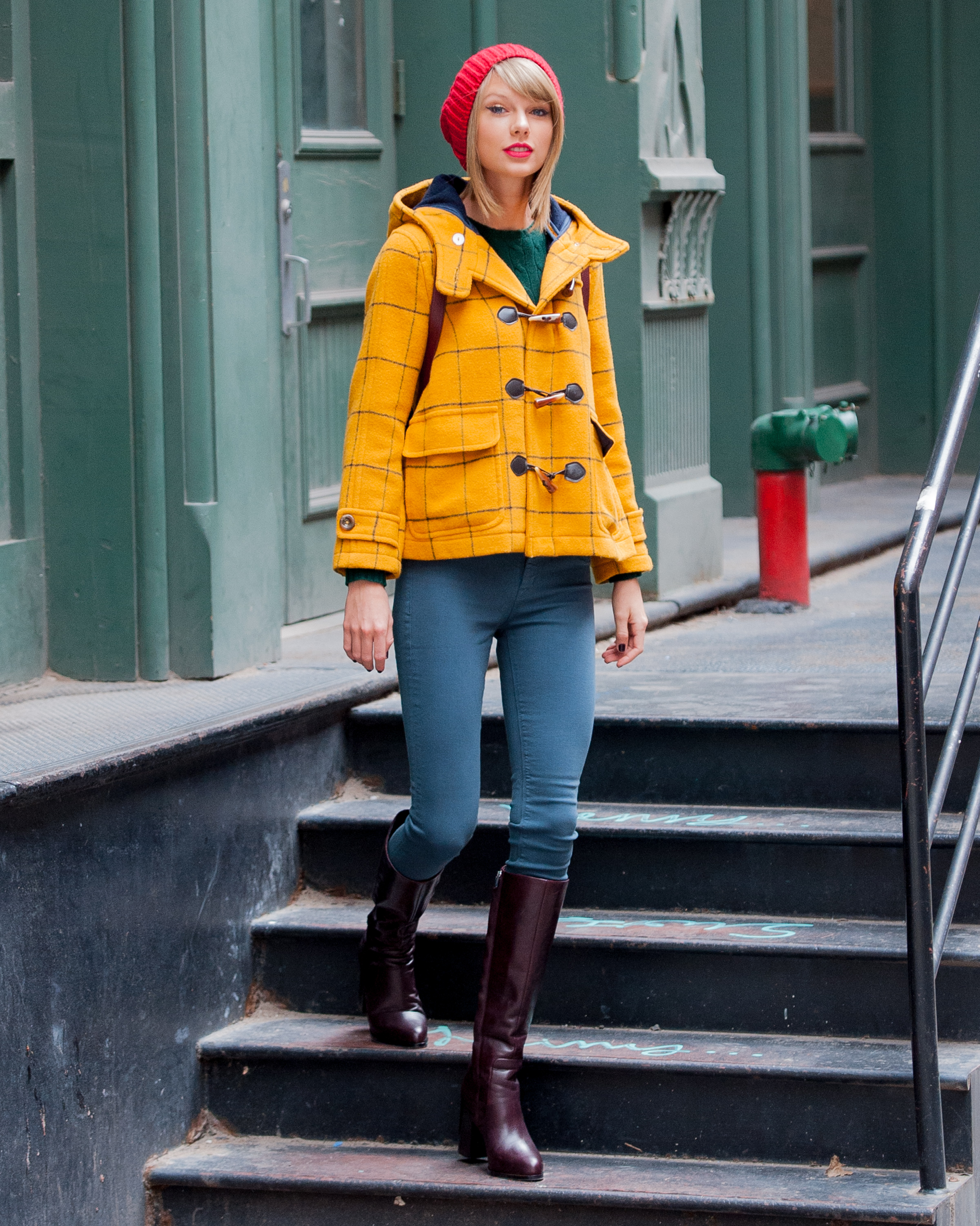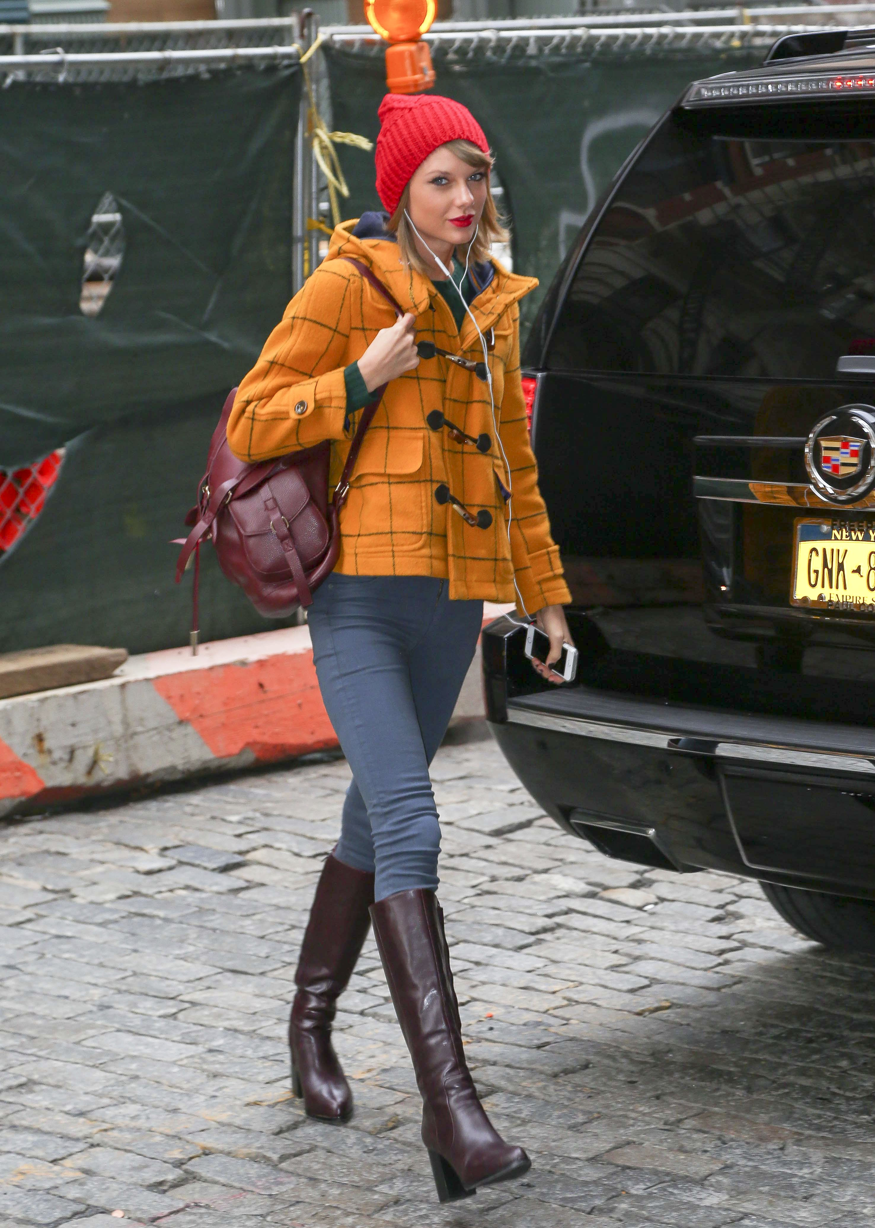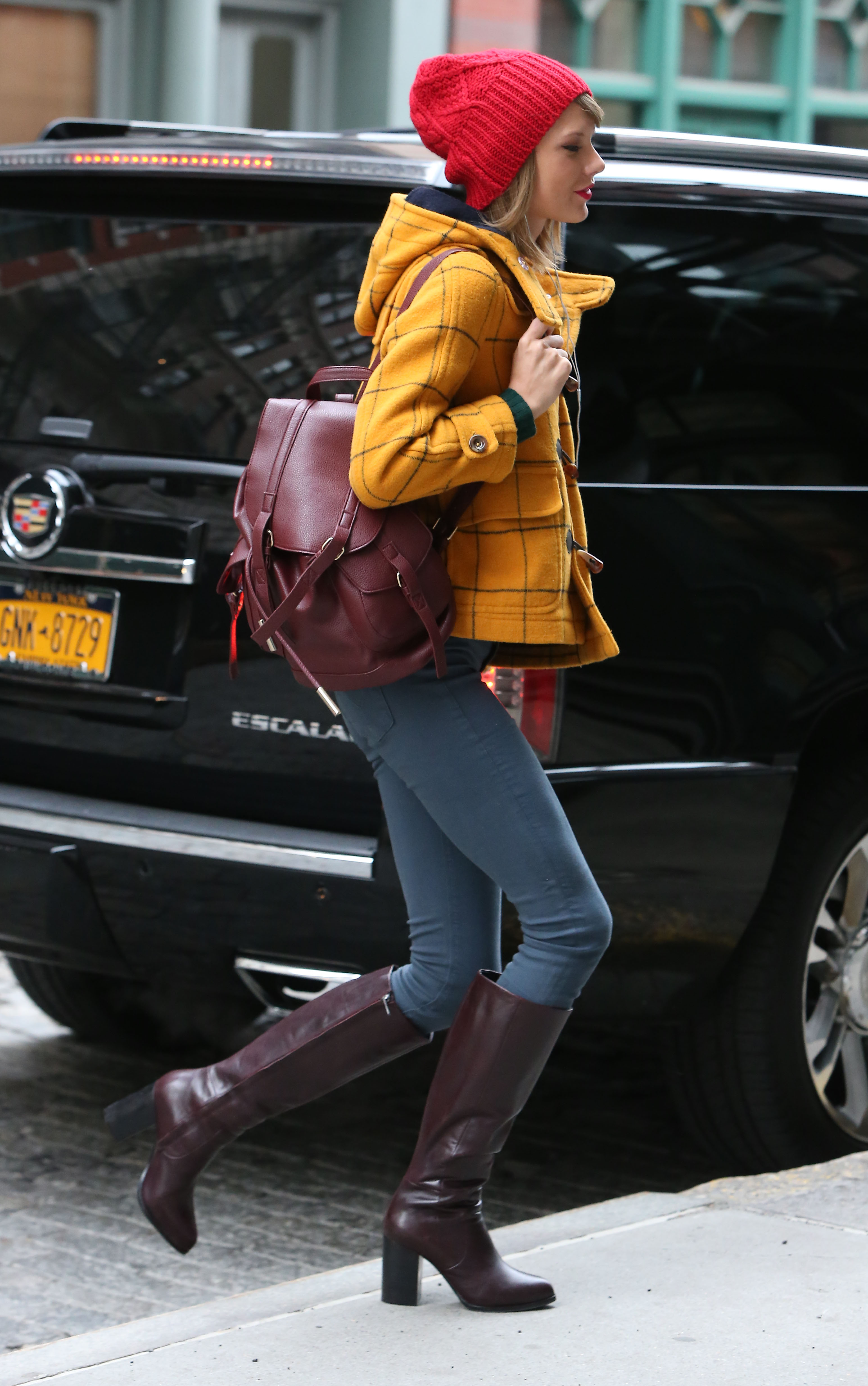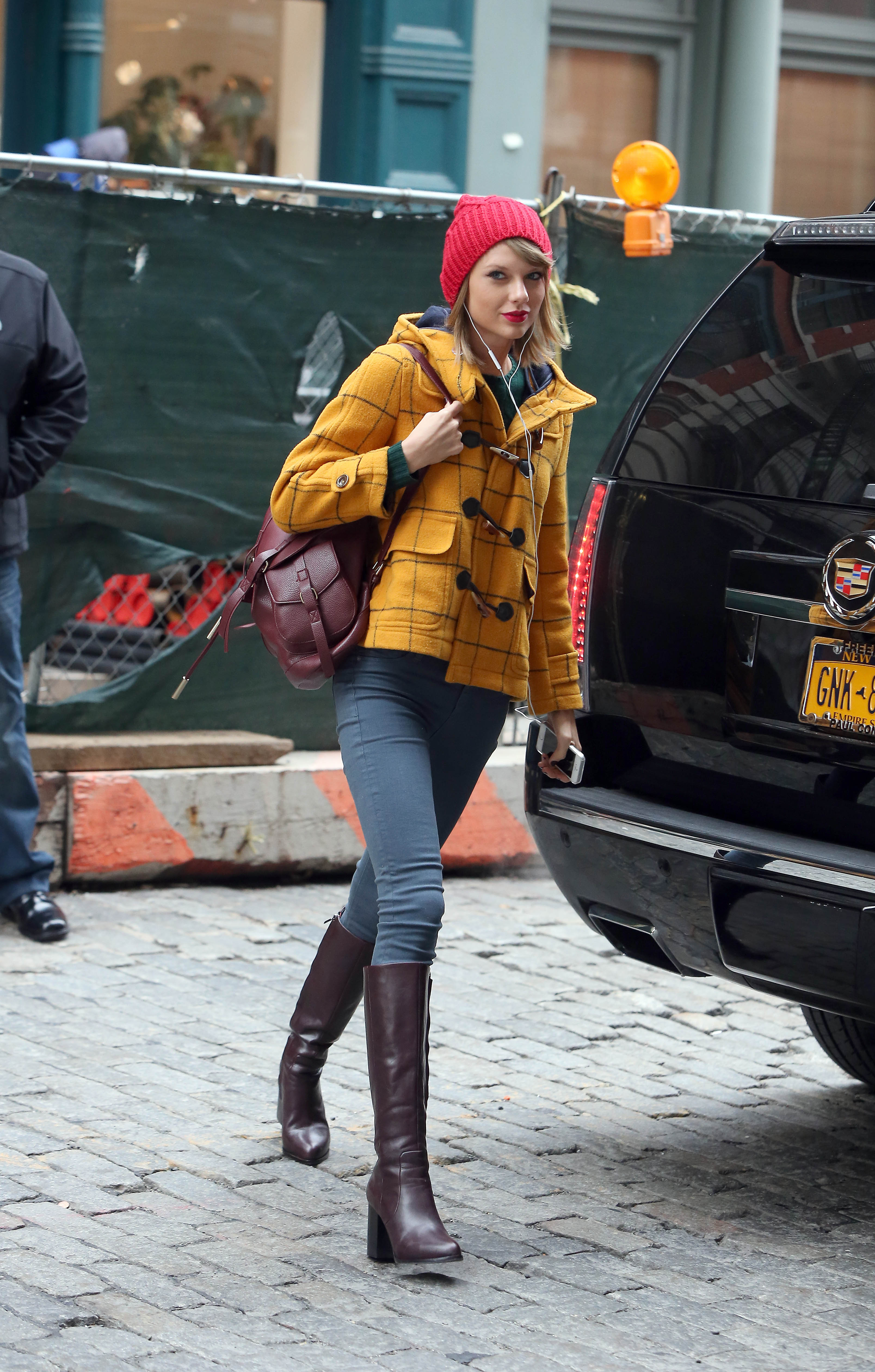 Leaving her apartment on December 12, 2014 in New York City.