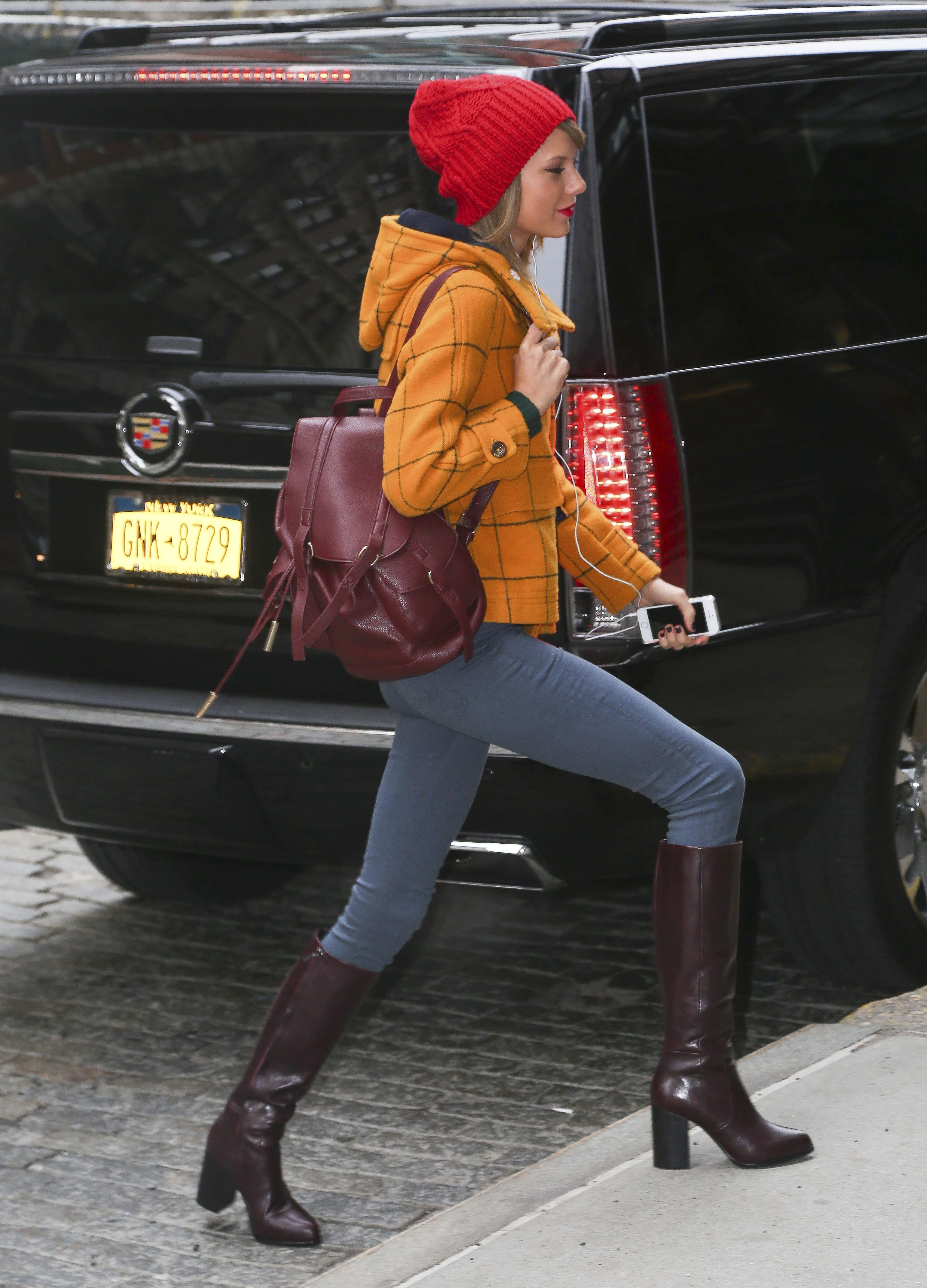 Leaving her apartment on December 8, 2014 in New York City.
