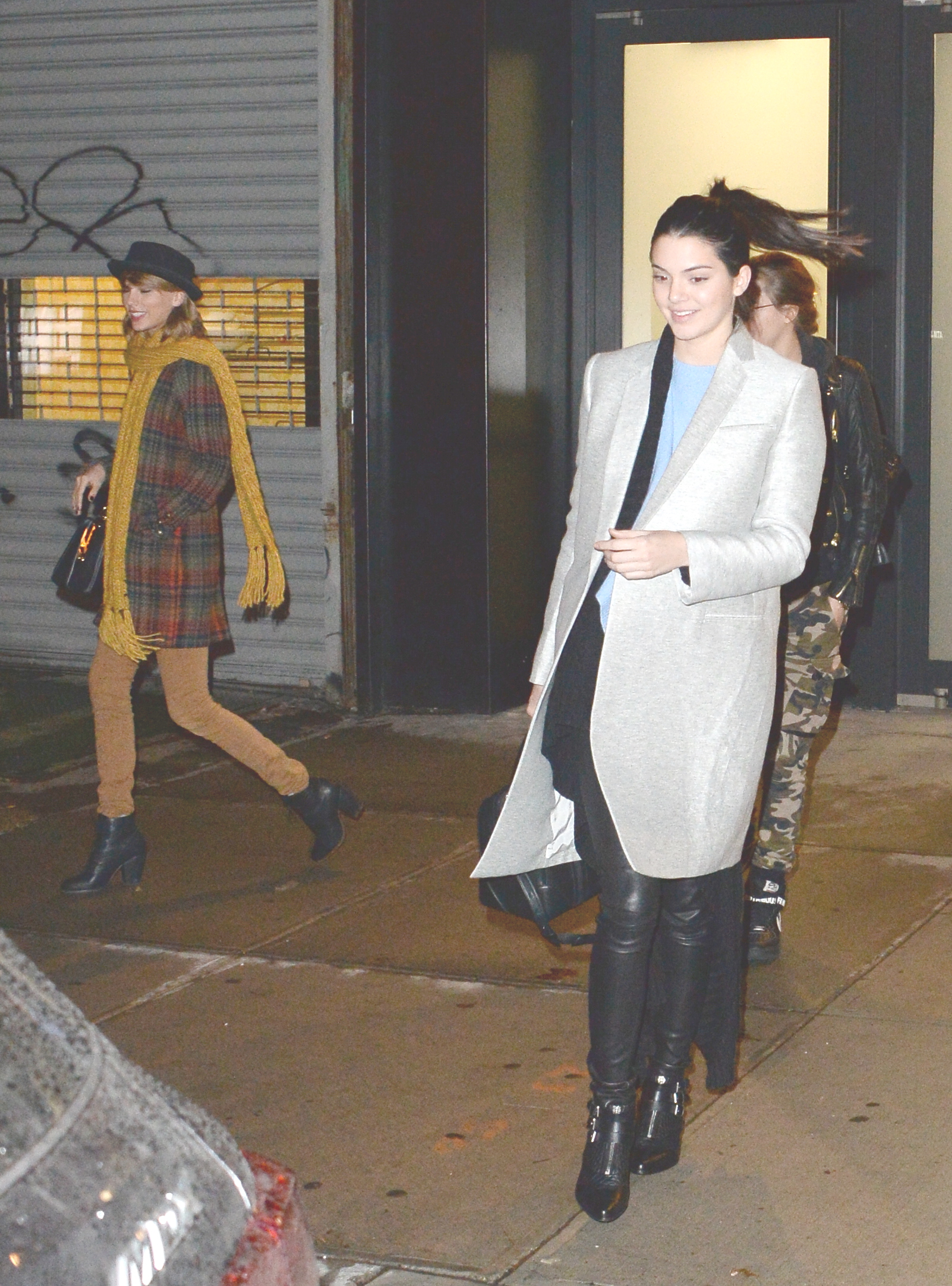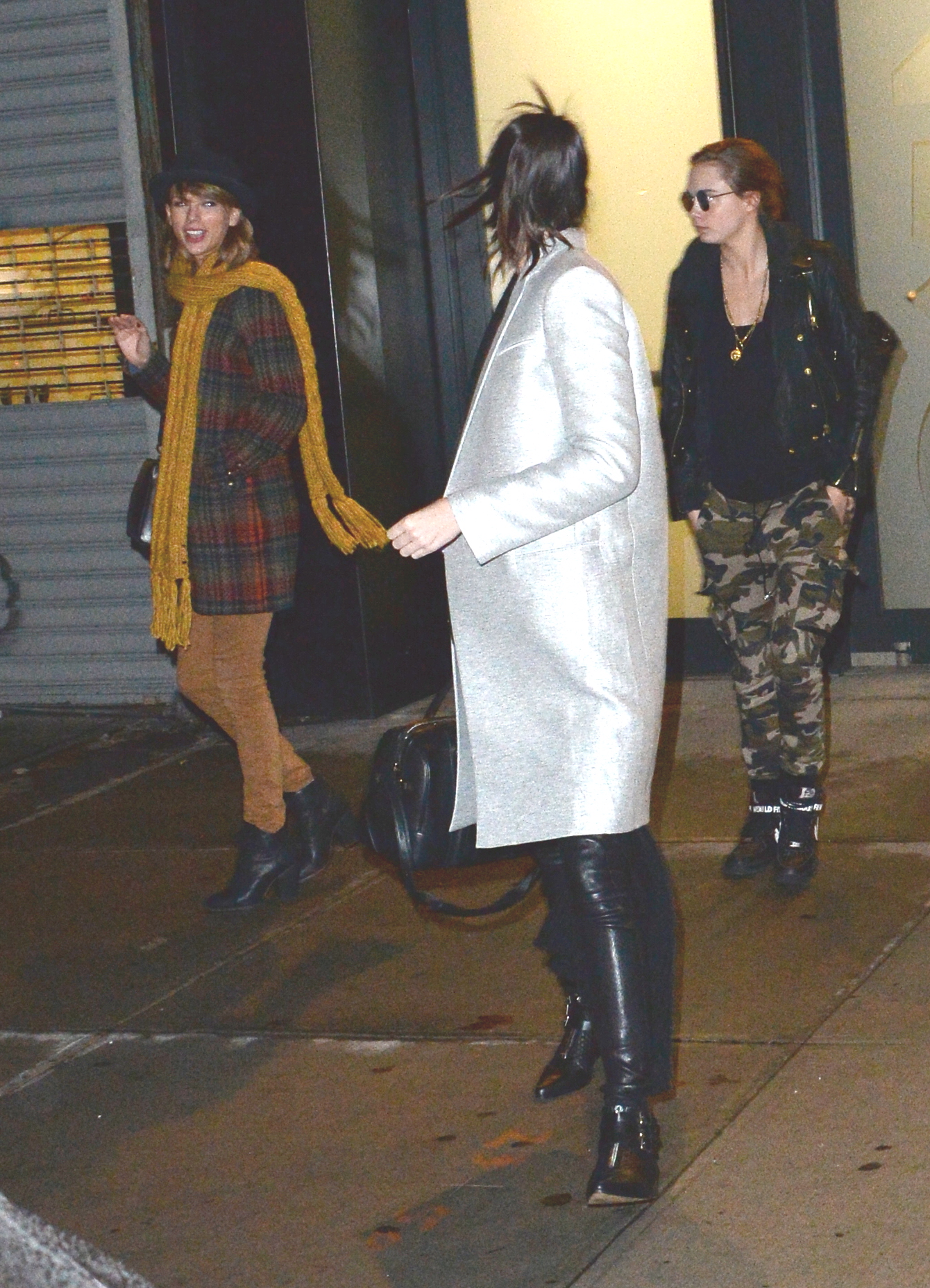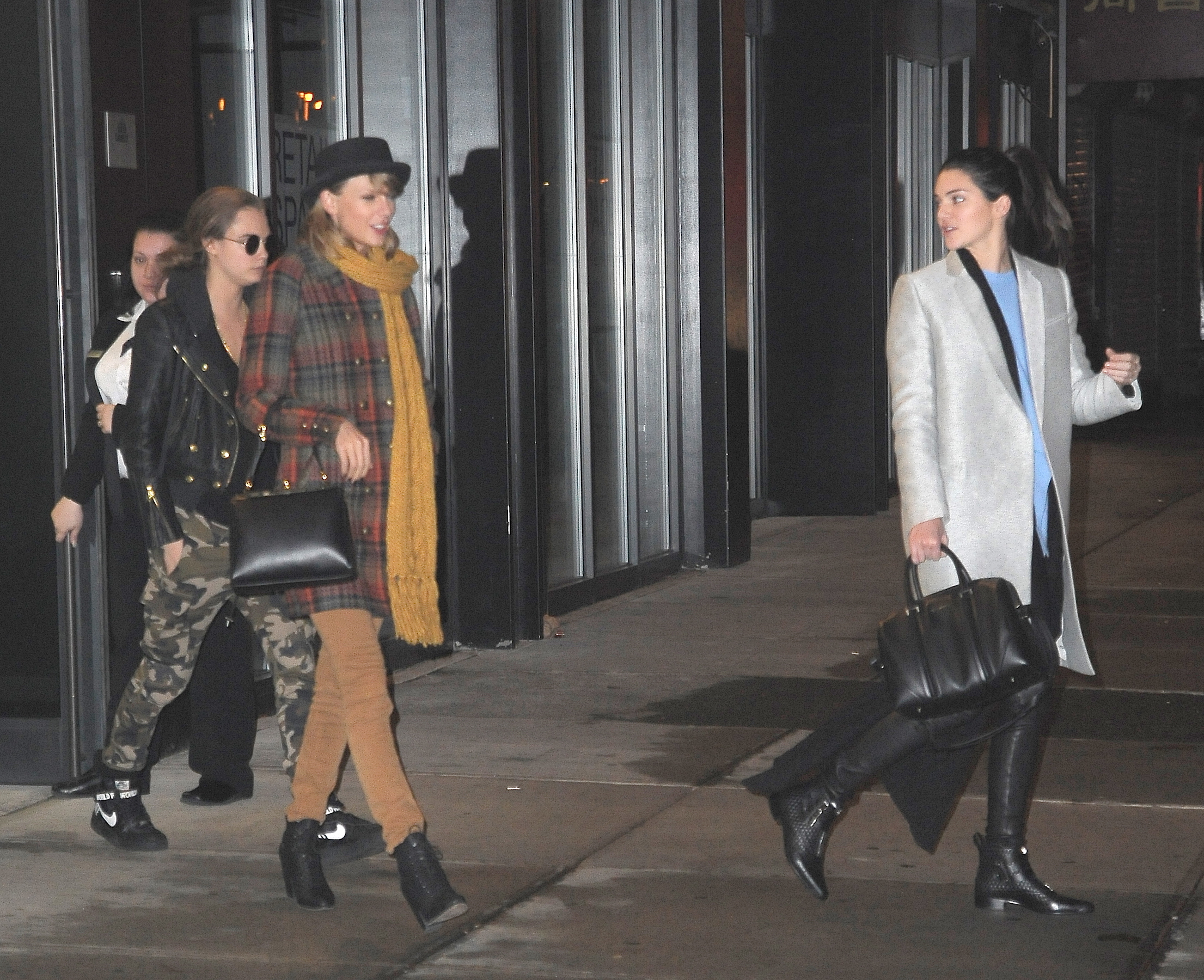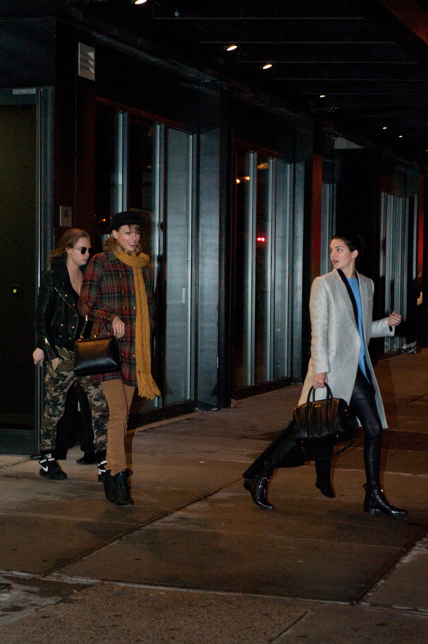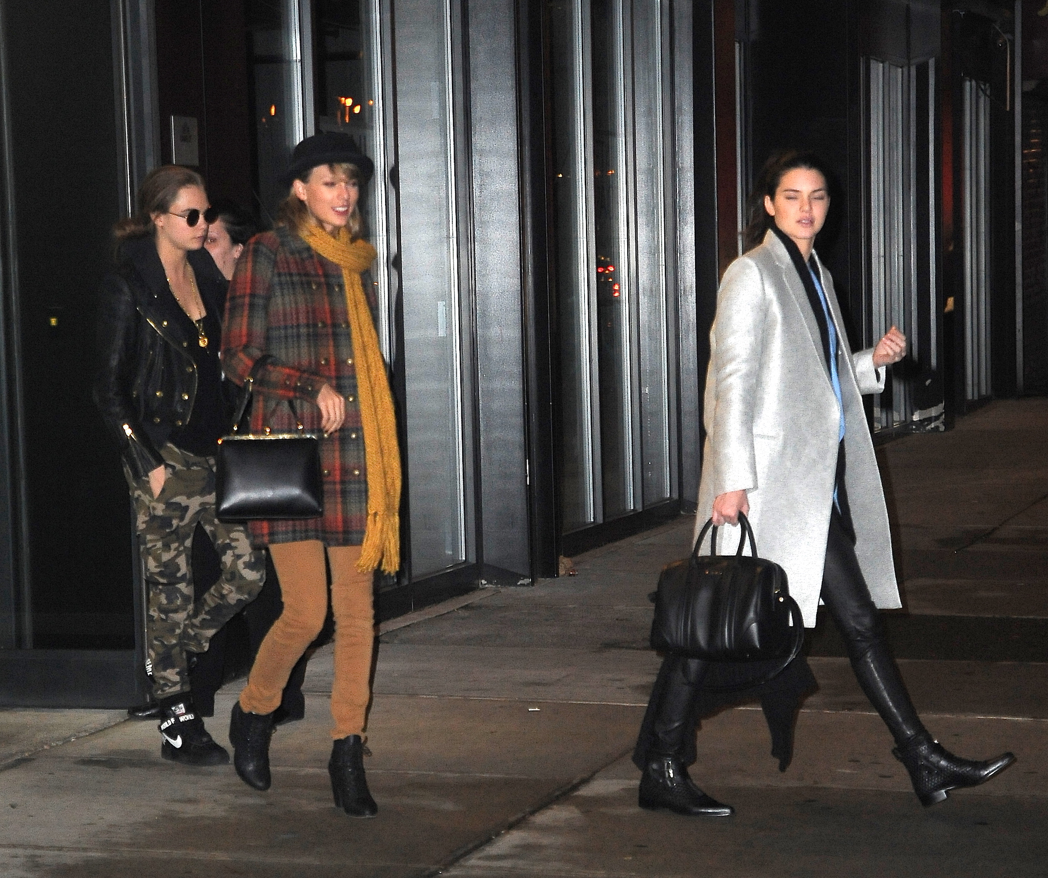 Leaving Gigi Hadid's house with Kendall Jenner and Cara Delevingne on December 10, 2014 in New York City.