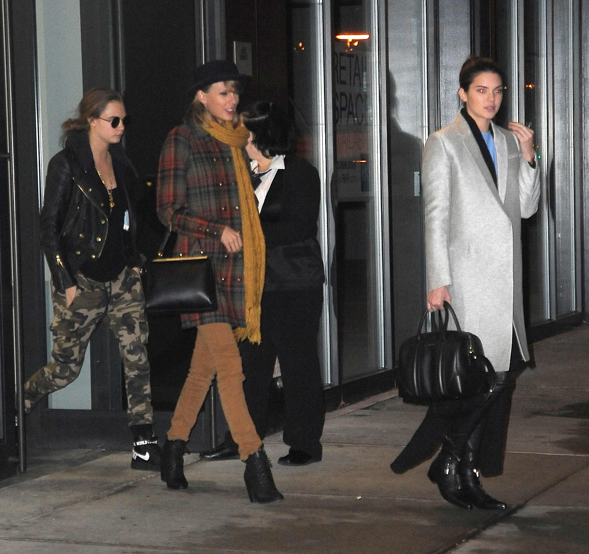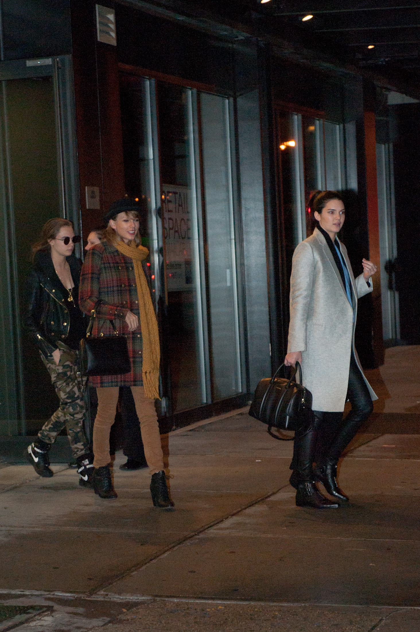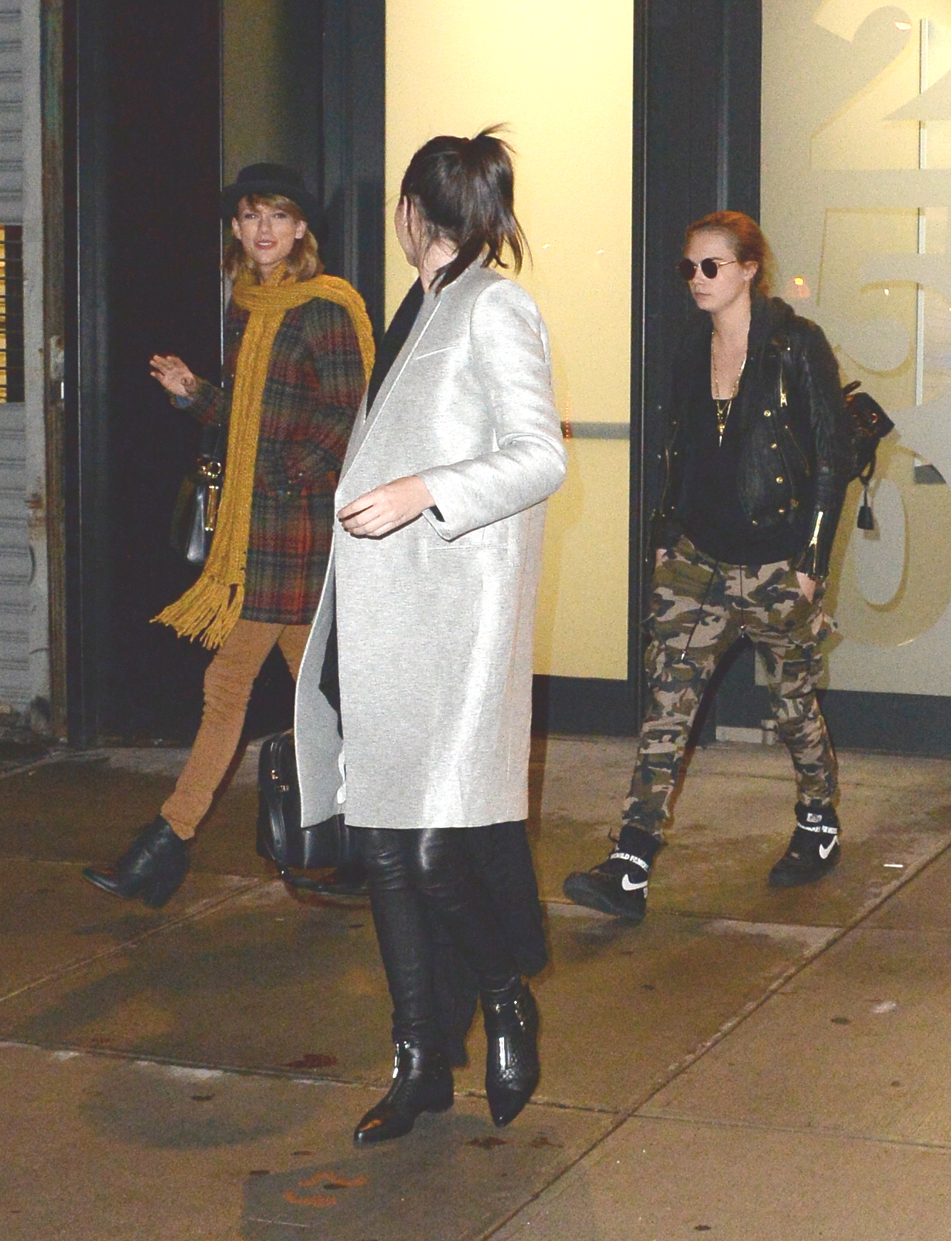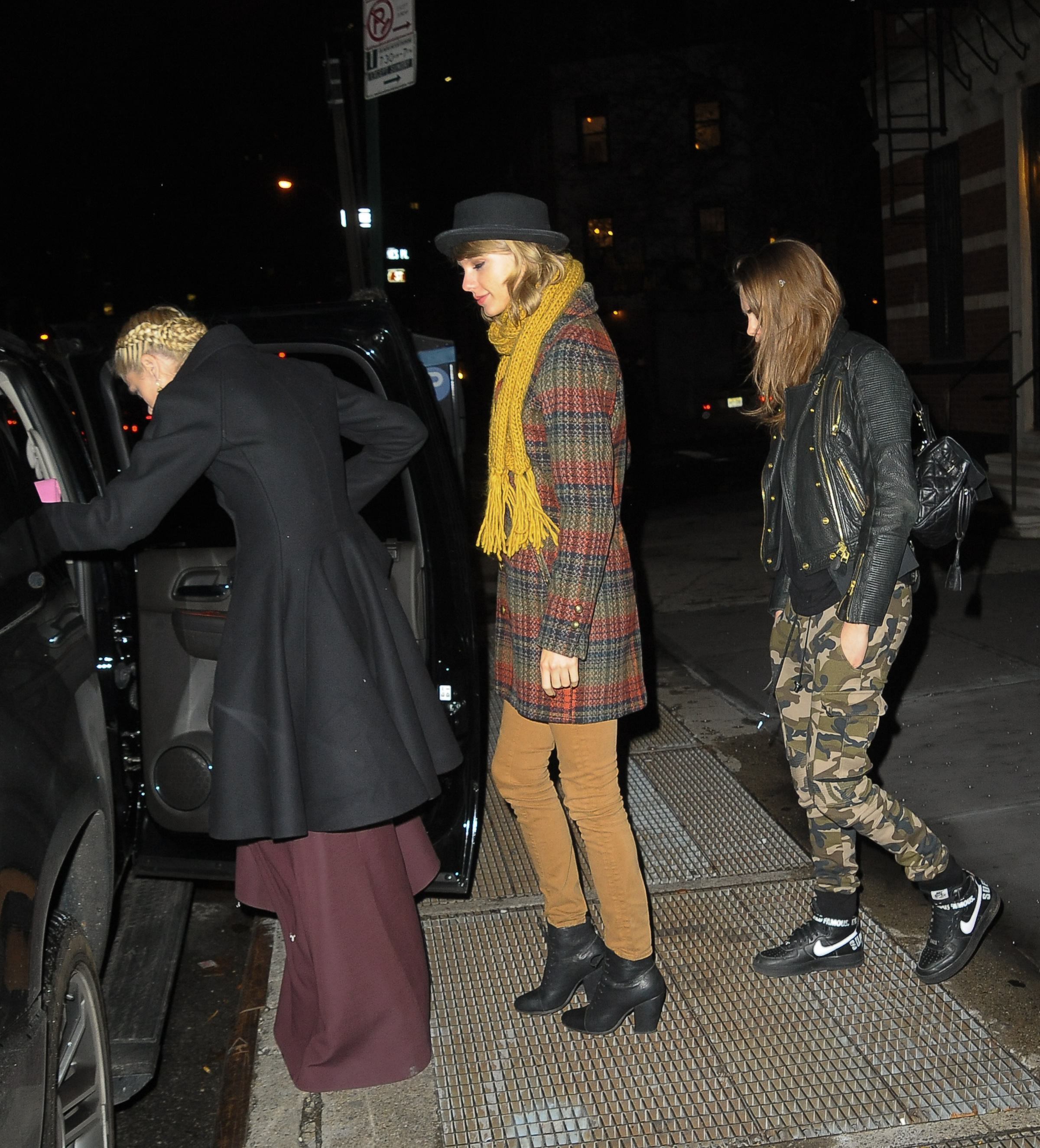 Leaving Gigi Hadid's house with Kendall Jenner and Cara Delevingne on December 10, 2014 in New York City.