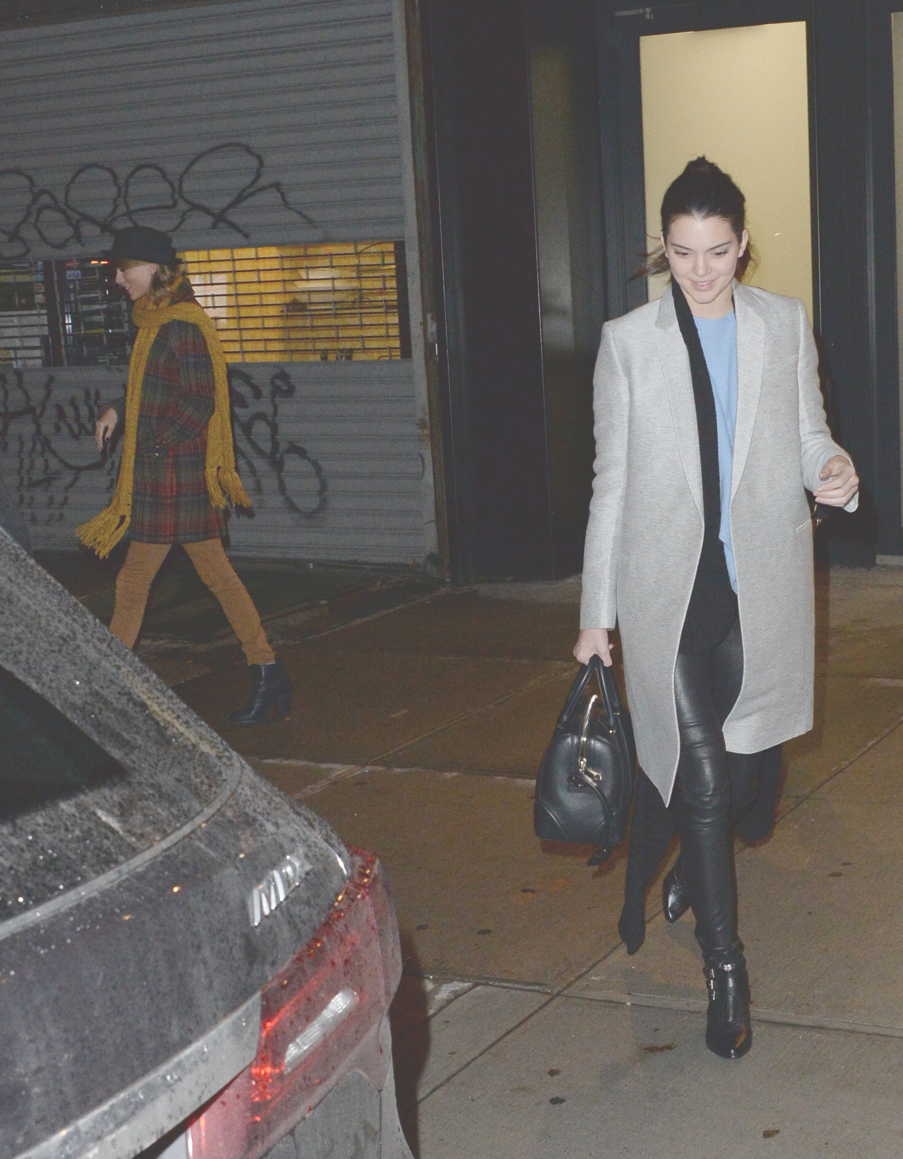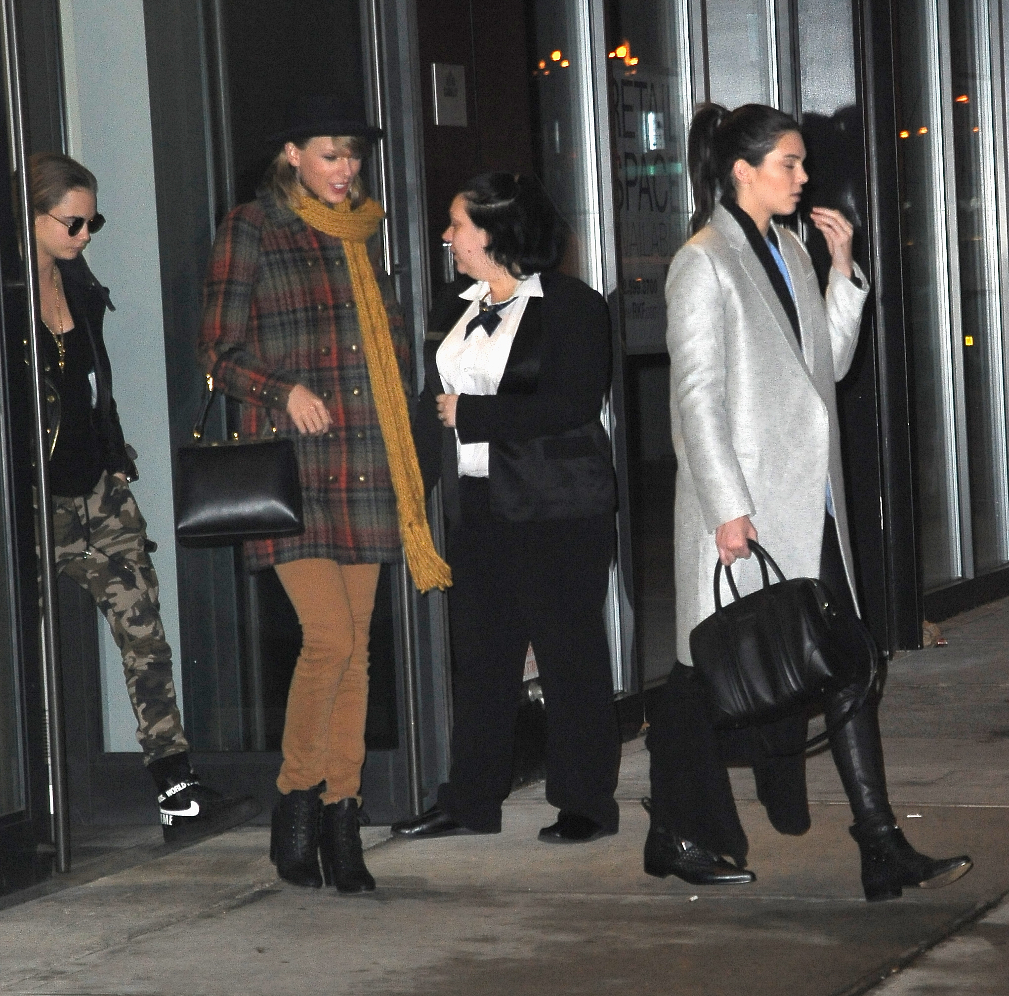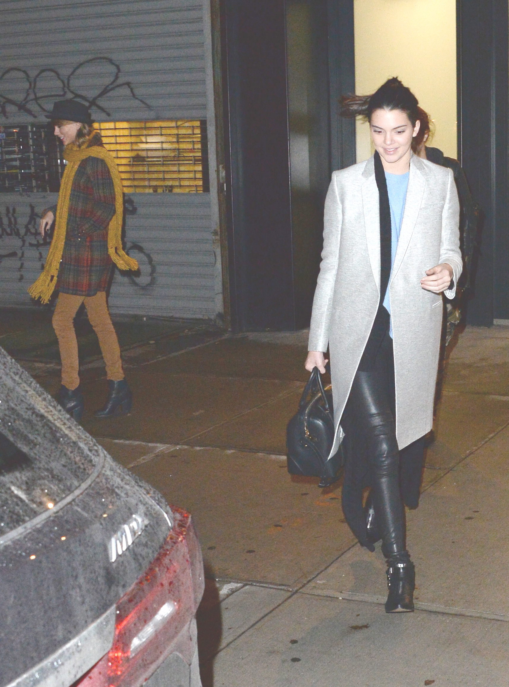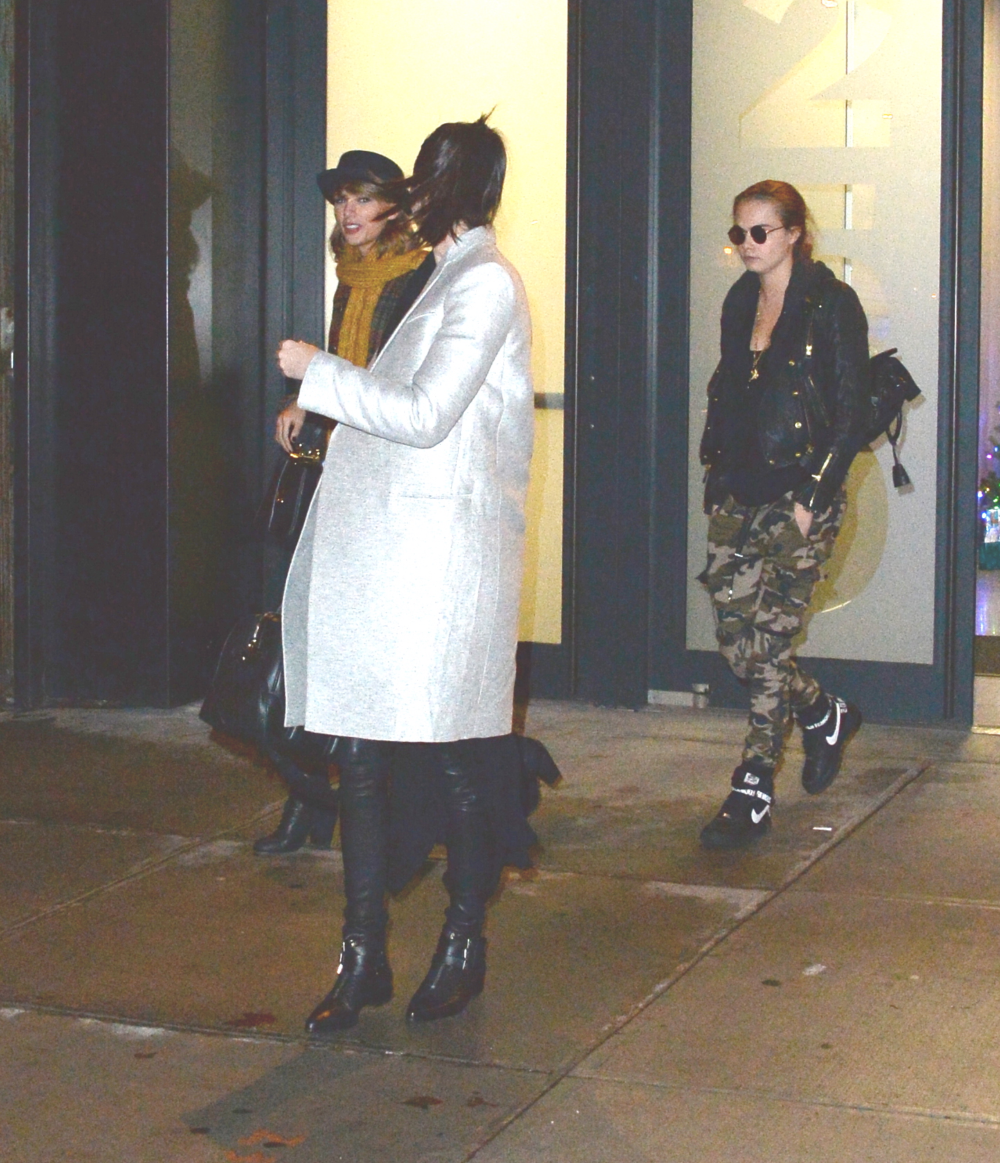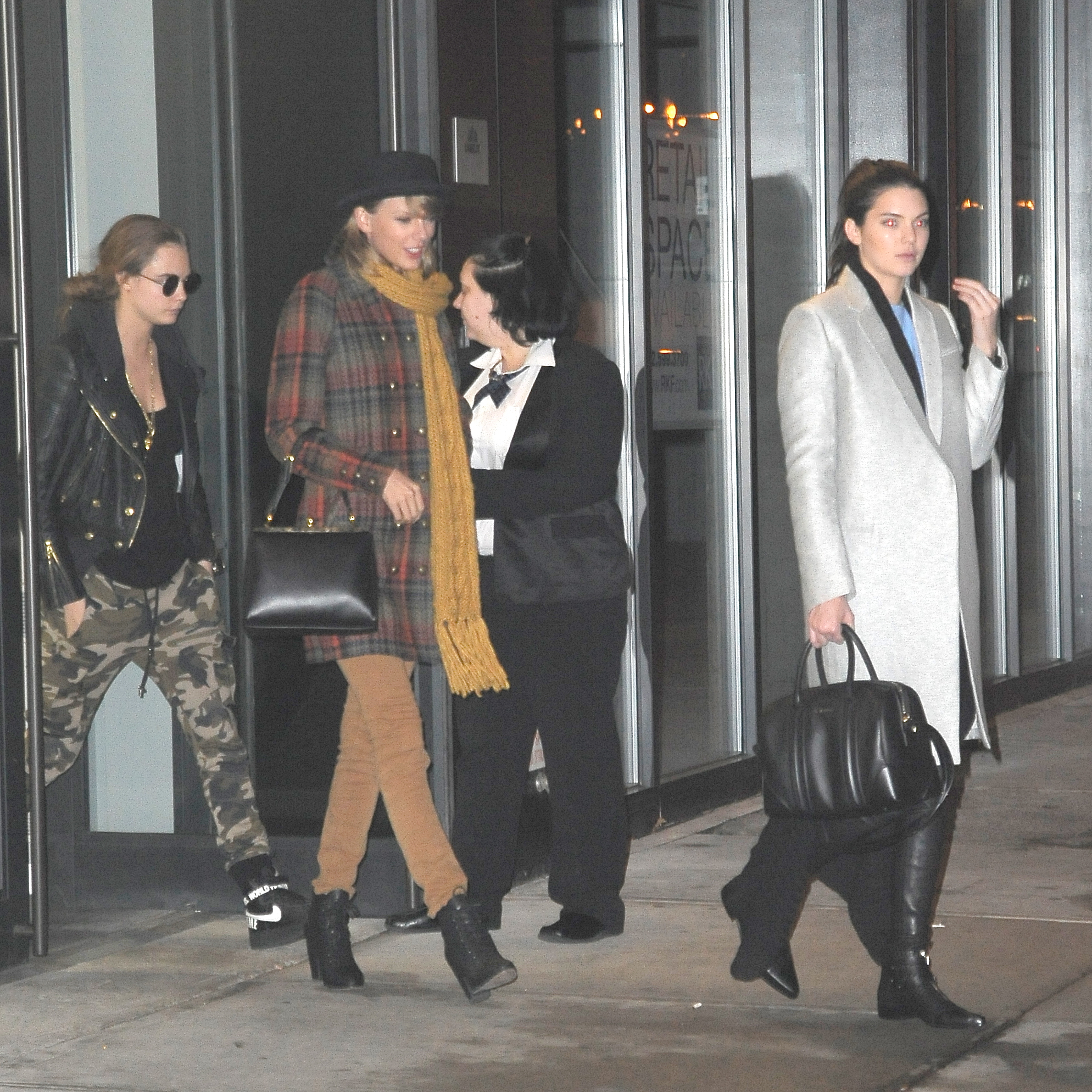 Leaving Gigi Hadid's house with Kendall Jenner and Cara Delevingne on December 10, 2014 in New York City.