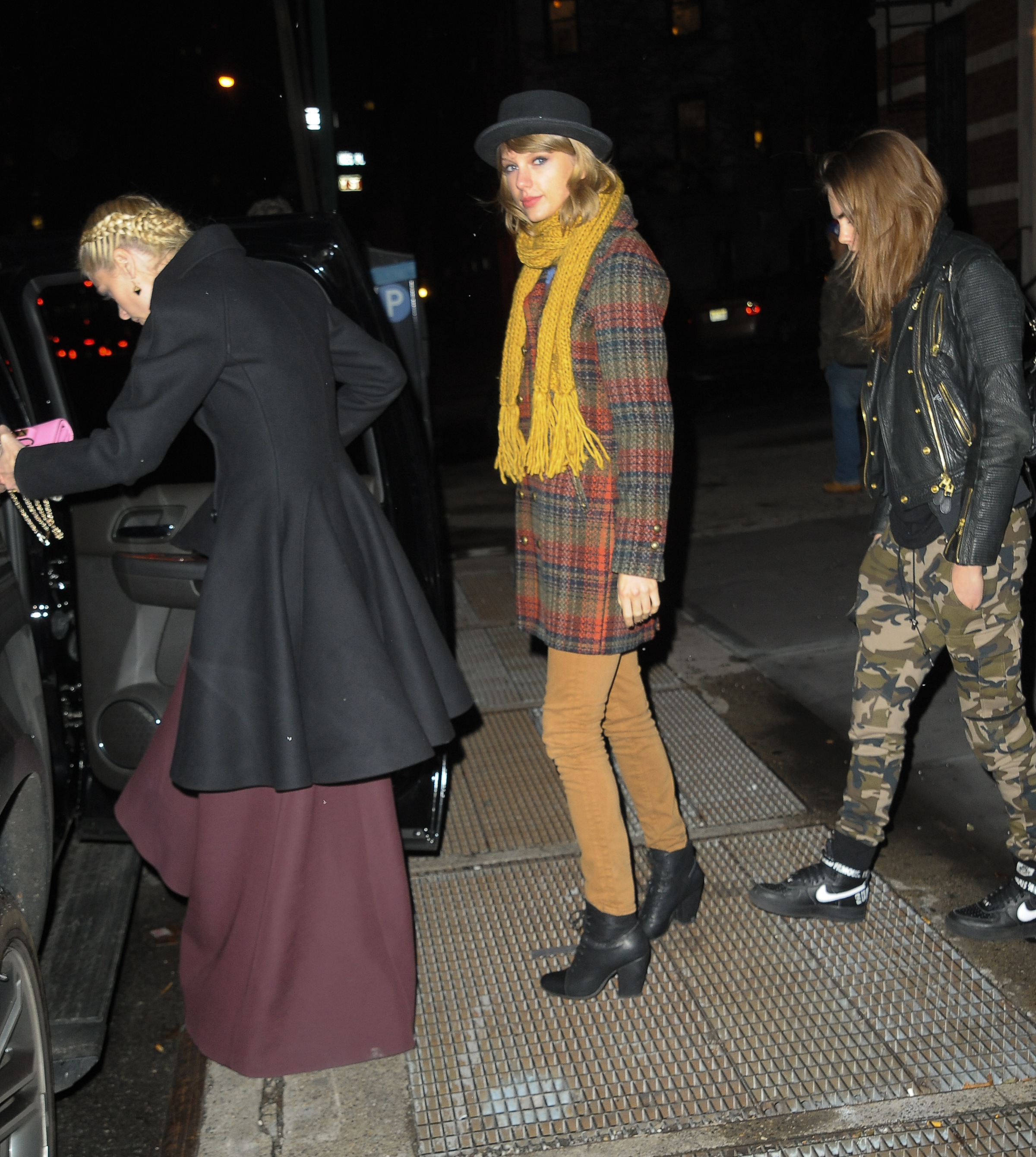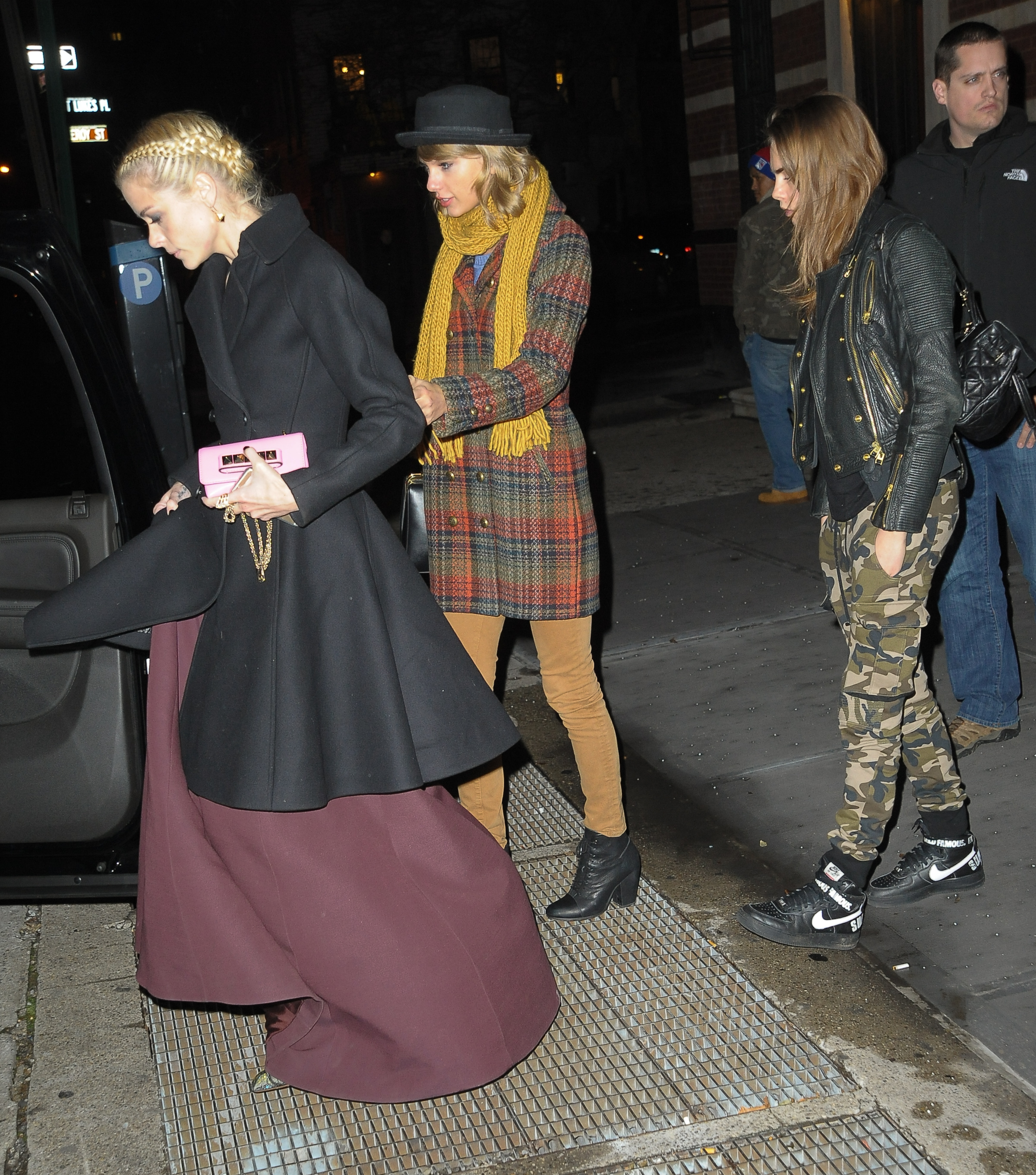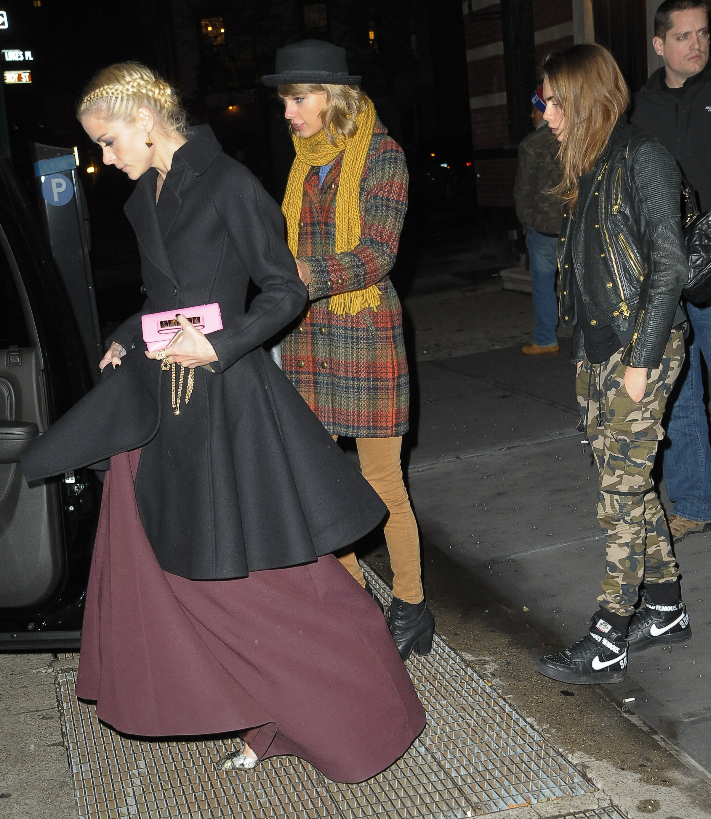 Heading home with Cara Delevingne and Jaime King on December 10, 2014 in New York City.