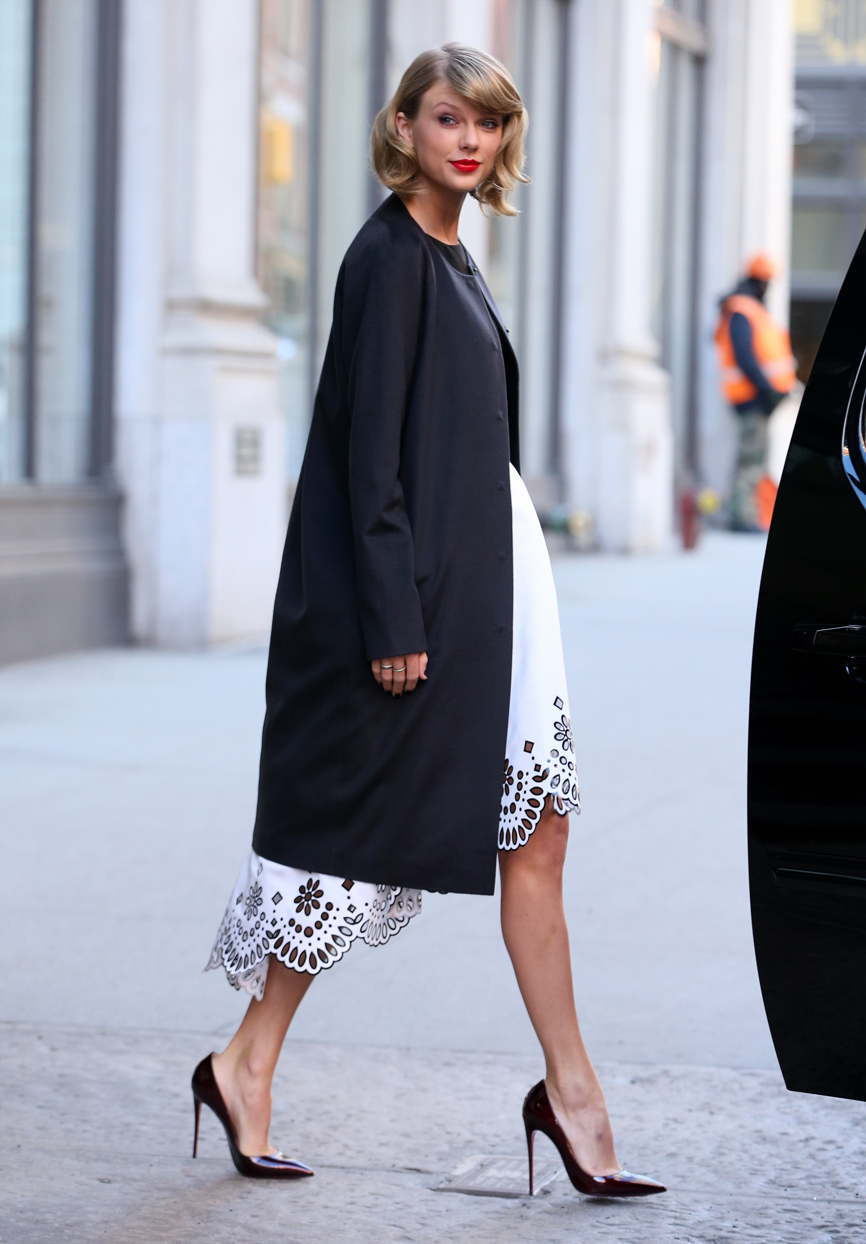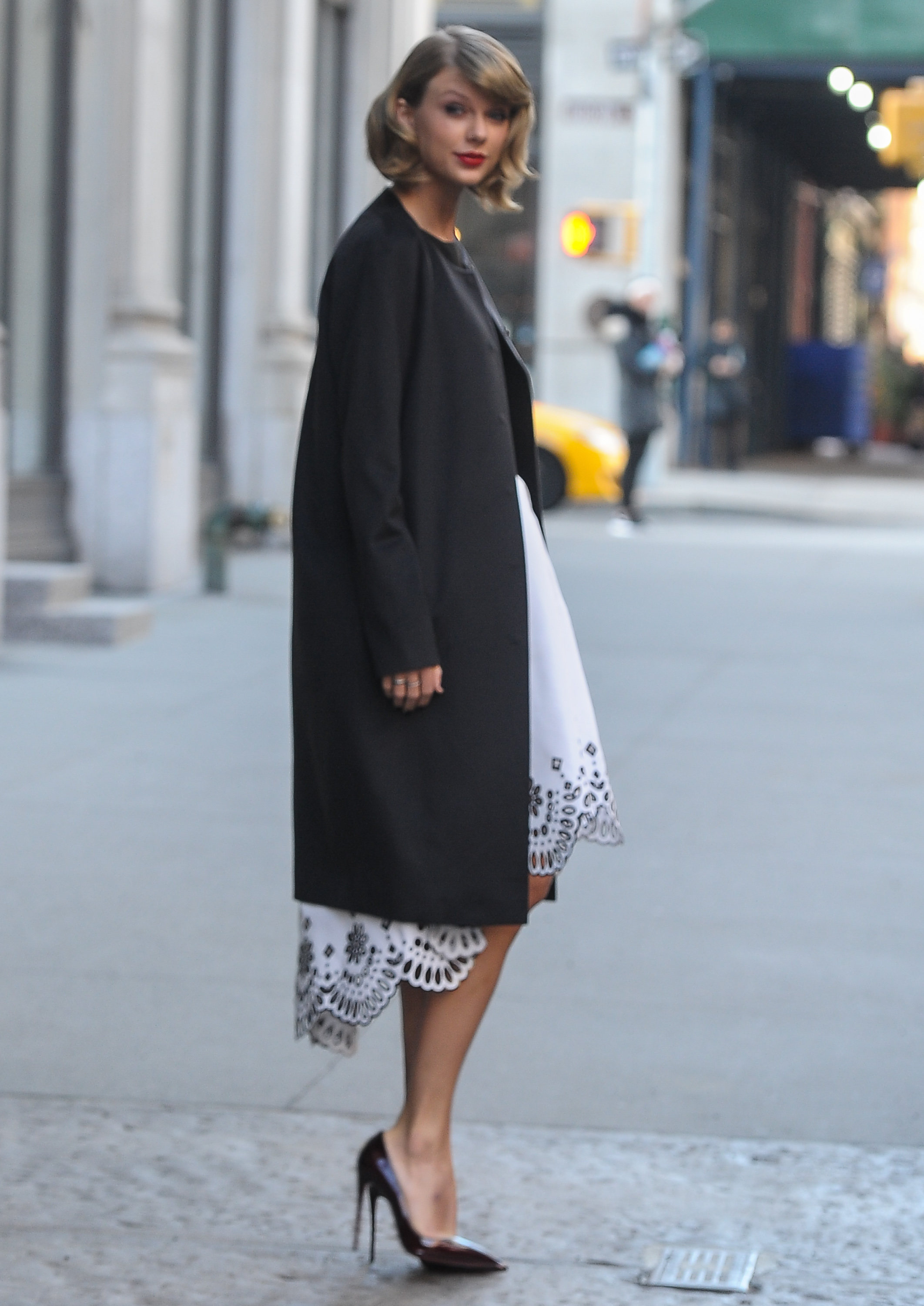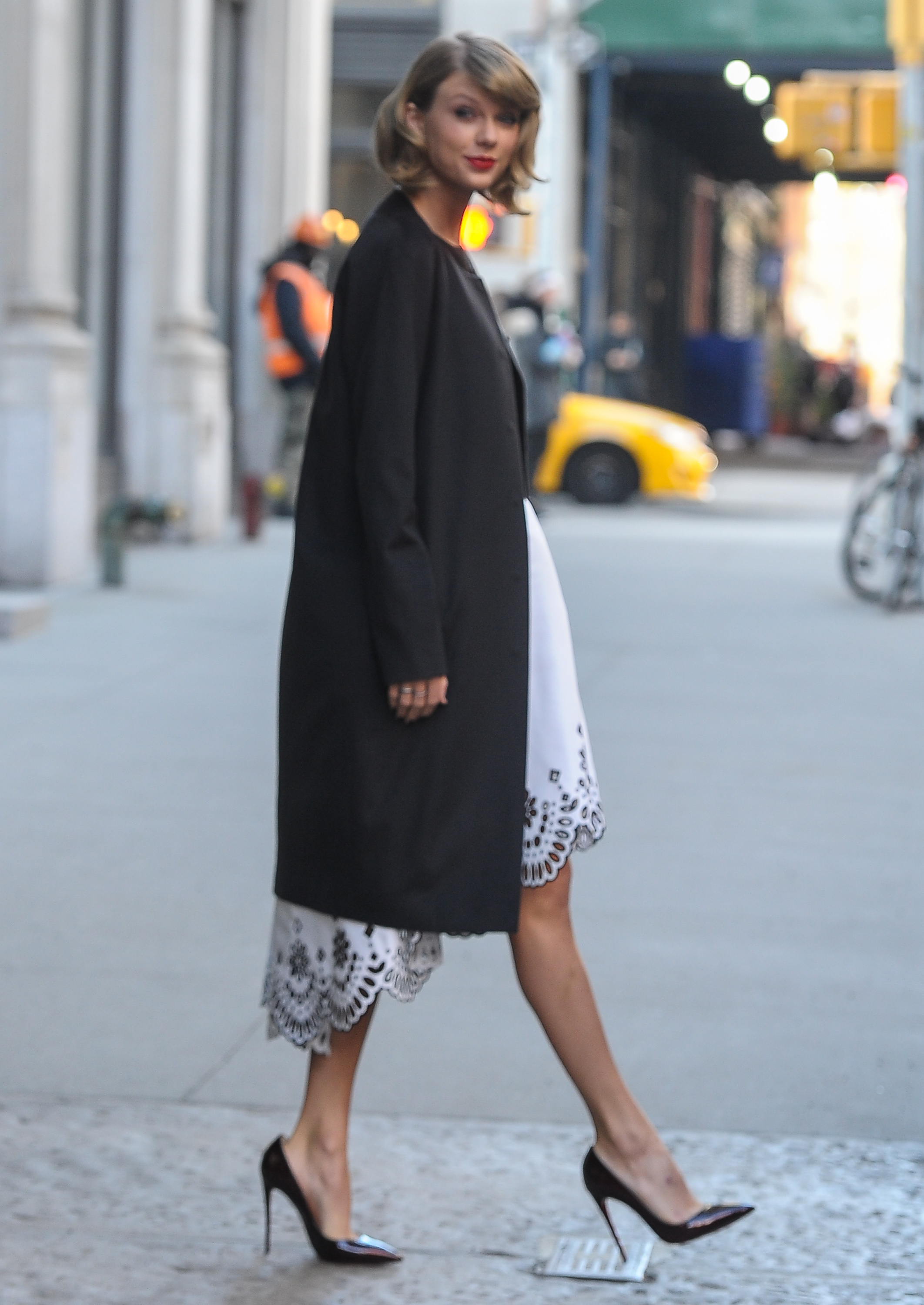 Leaving ABC Cocina/Arriving at her apartment on December 8, 2014 in New York City.