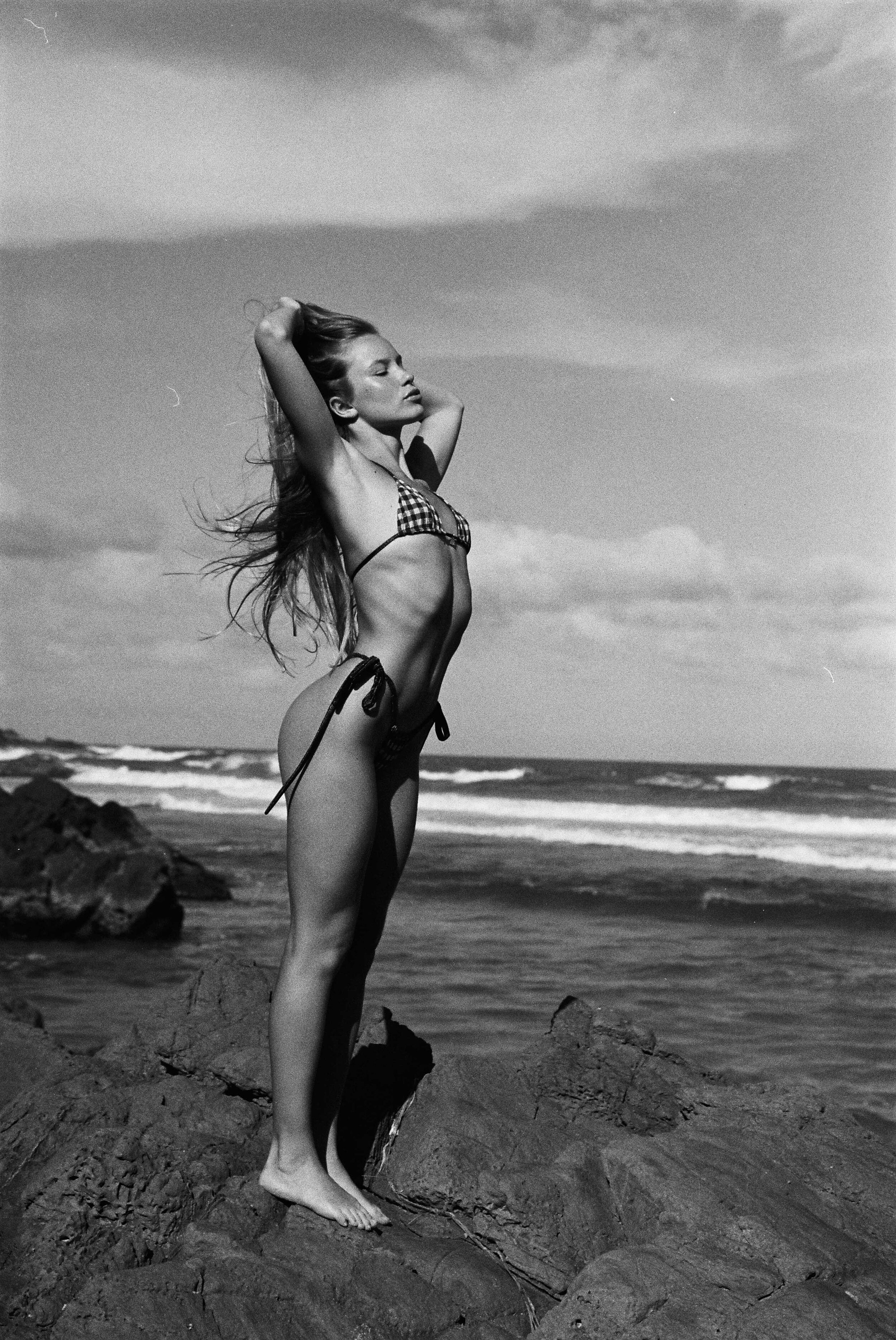 After a few days on the road, travelling up from Sydney, I reached Byron, where I met with Alix for a late afternoon shoot around Broken Head. The sun filtered through the clouds as we steadily shot our way through a few rolls. Byron has this habit of delivering some of the best light to work within Australia; the long flat beaches, the relative calm of the wind, and these beautiful jagged rock faces at the most easterly point in Australia make it feel so tremendous.